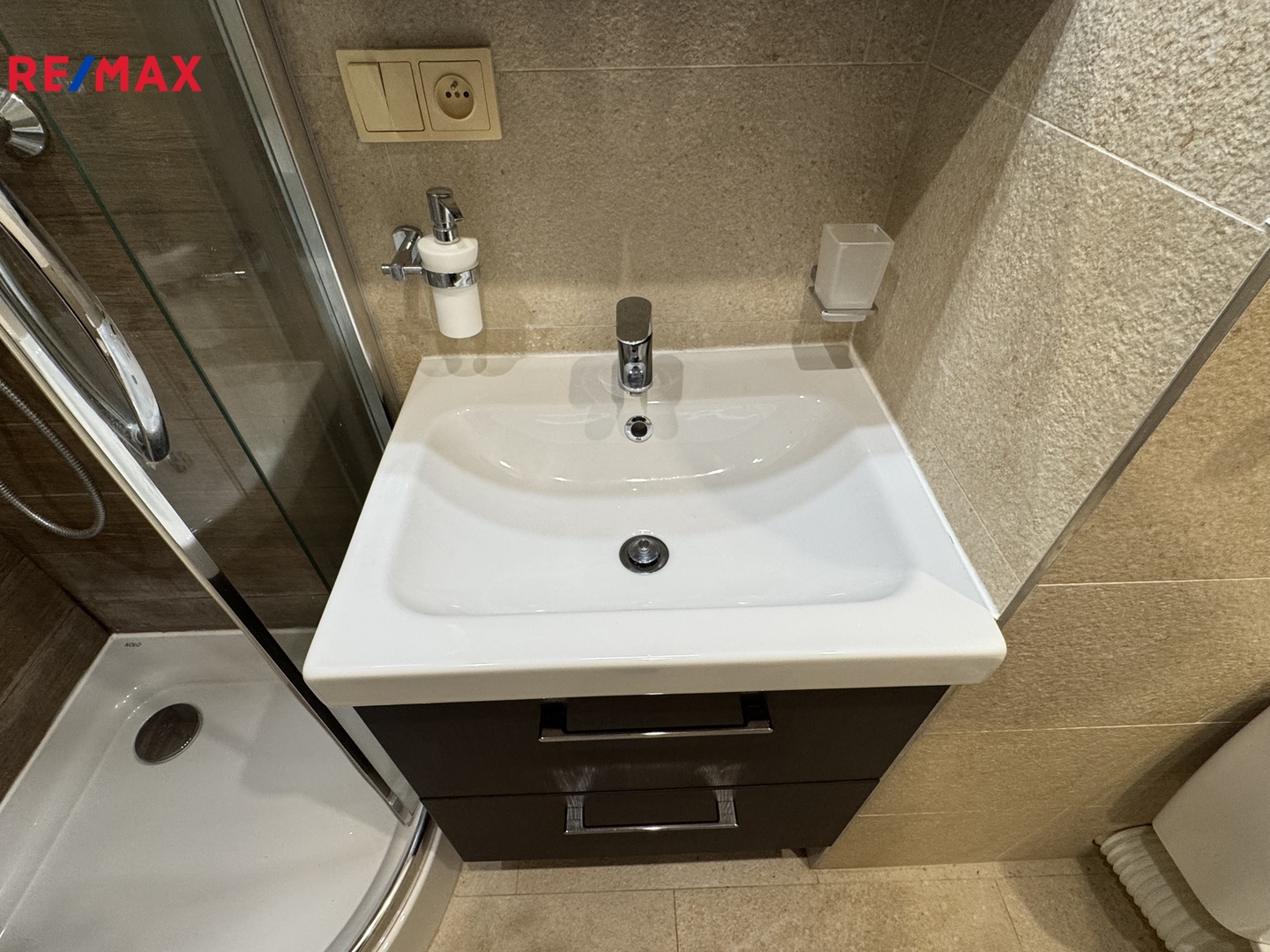 Jedná se o hezký byt, který prošel rekonstrukcí (plastová okna, plovoucí podlaha, zděné jádro) a je vybavený kuchyňskou linkou, sporákem s troubou, lednicí, pračkou, pohovkou, konferenčním stolkem, obývací stěnou a skříní. Koupelna se sprchovým koutem a WC. K bytu náleží také komora na chodbě před bytem.