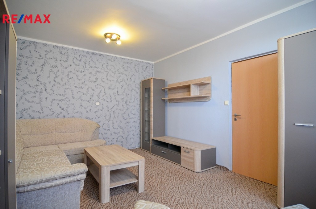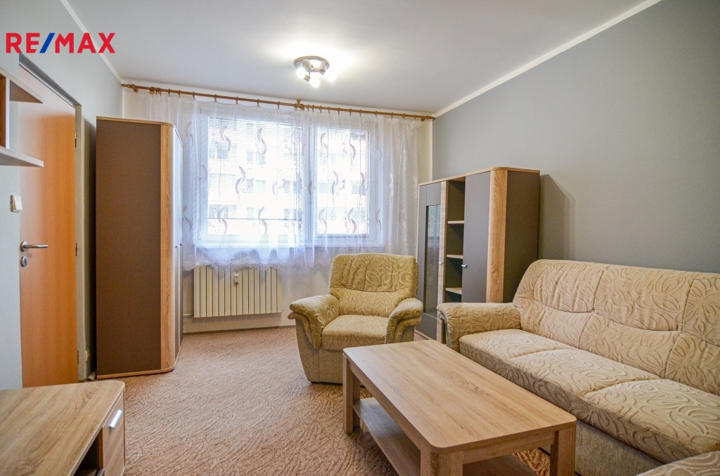 Byt se pronajímá včetně vybavení, jak je zachyceno na fotografiích. V ložnici zůstává manželská postel s matracemi, šatní skříně a komody, v obývacím pokoji sedací souprava, konferenční stolek a nábytková sestava.