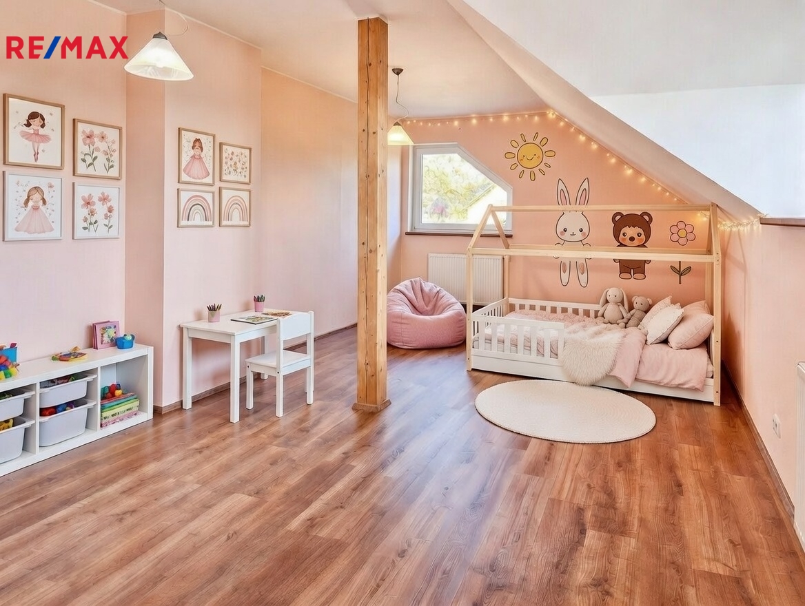 Podkroví o orientační výměře 116 m² tvoří plnohodnotnou obytnou část domu. Nacházejí se zde tři prostorné pokoje vhodné jako ložnice, dětské pokoje či pracovna, dále koupelna, samostatné WC a chodba. Podkroví bylo dokončeno v roce 2015 a je kvalitně izolováno, což zajišťuje komfortní bydlení i během letních měsíců.