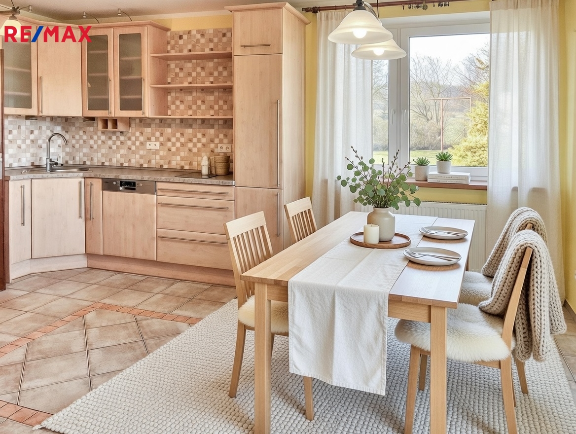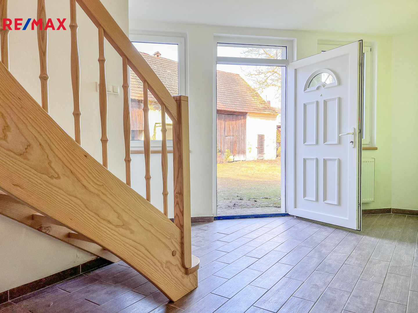 Nemovitost se prodává bez vybavení, součástí je ovšem kuchyňská linka, jinak je dům prázdný. Na fotografiích je použit homestaging.