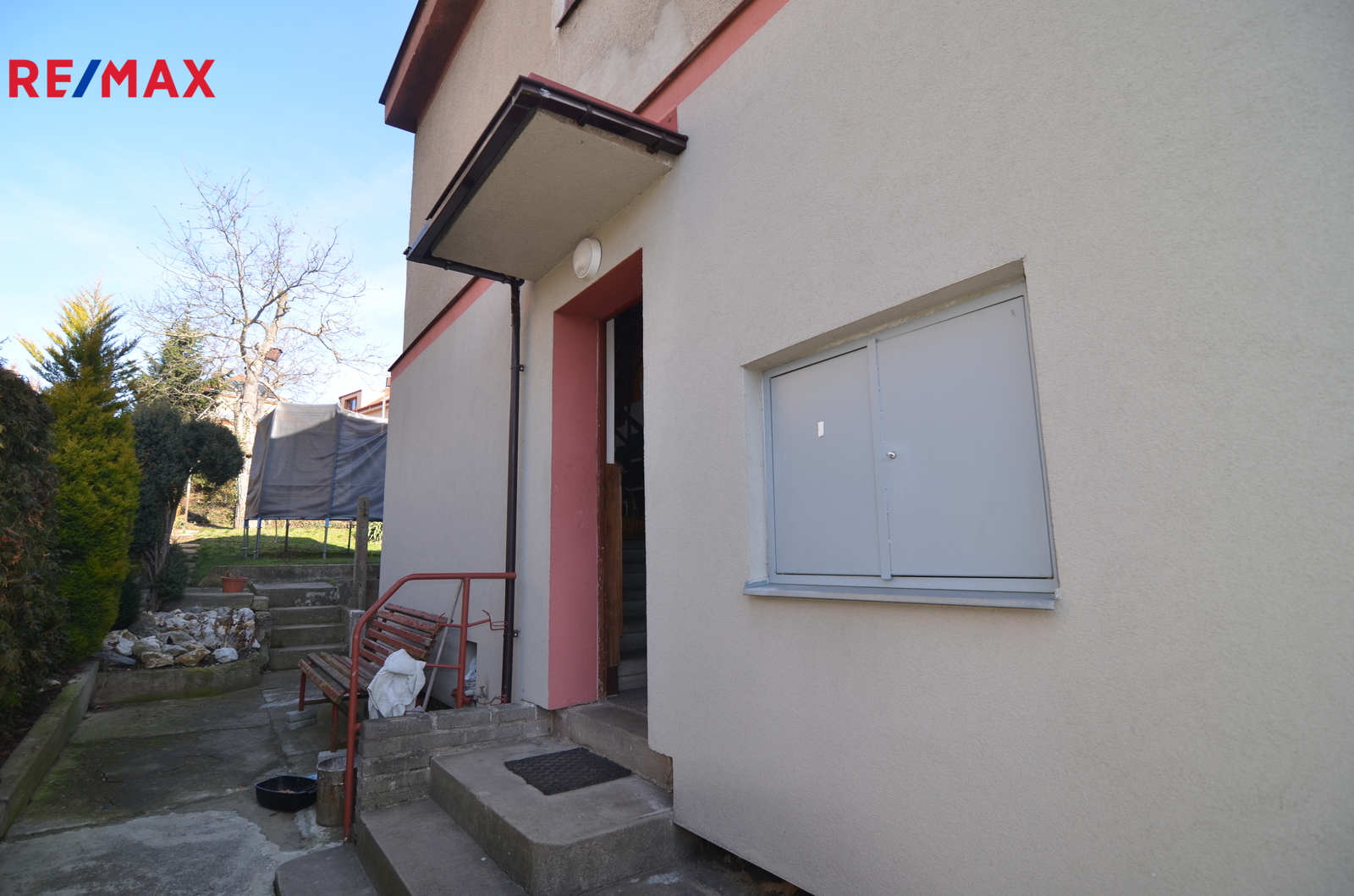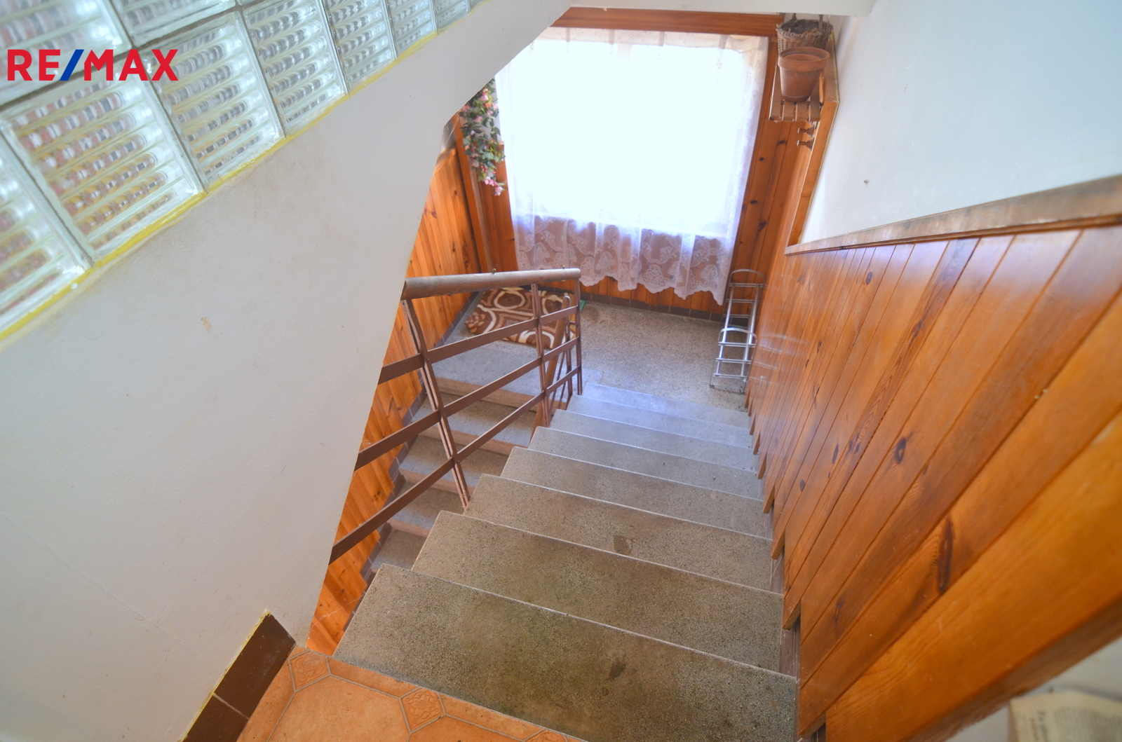 Samotná bytová jednotka (74 m2), která je předmětem prodeje, se nachází v 1. patře a je přístupná po schodišti ze společného zádveří. K dispozici je pak také polovina sklepu v suterénu domu o velikosti 13 m2 a další skladovací prostory na nižší půdě nad bytem.