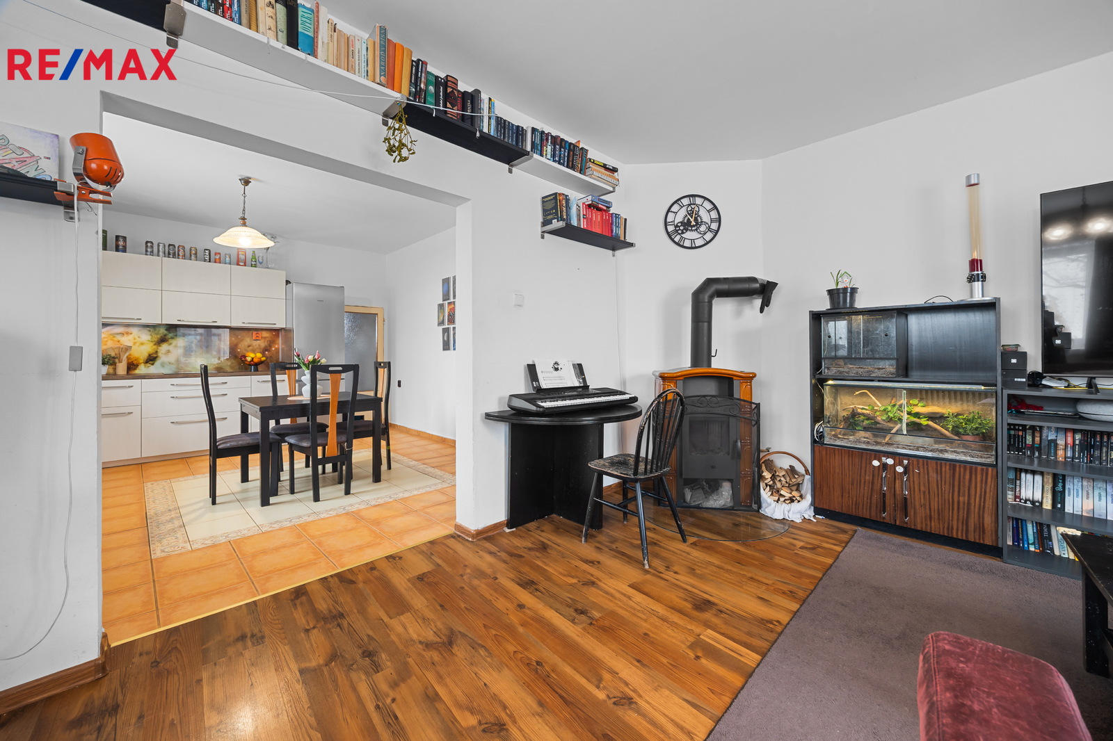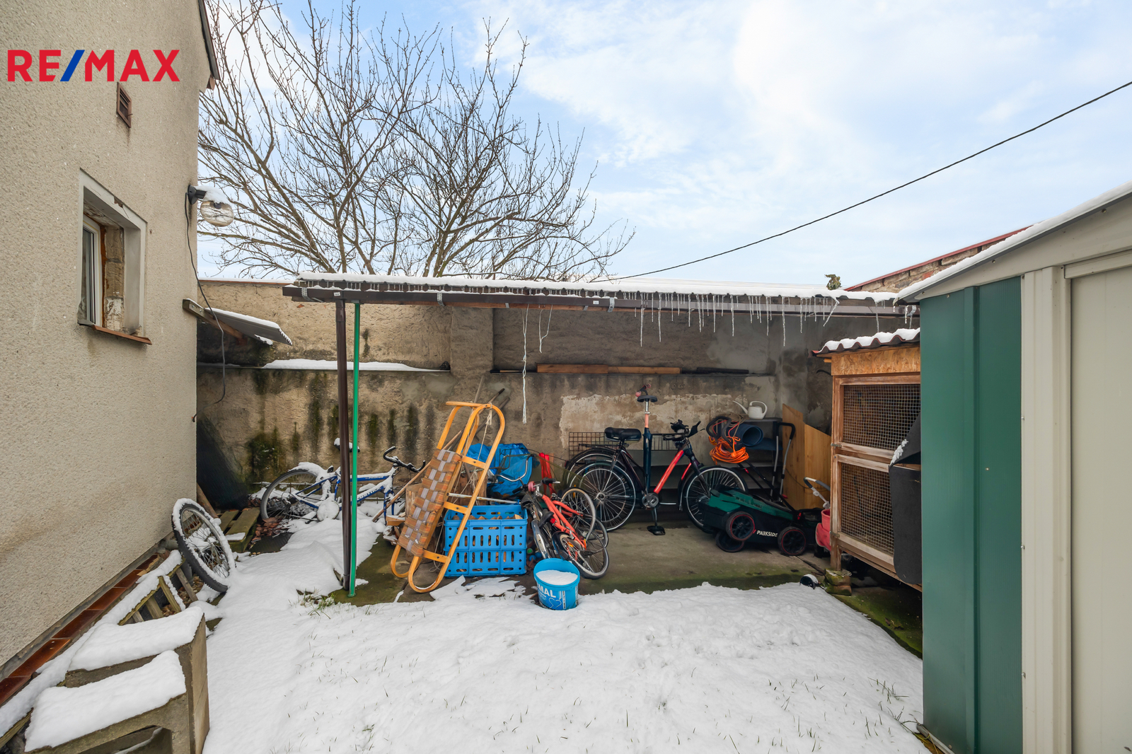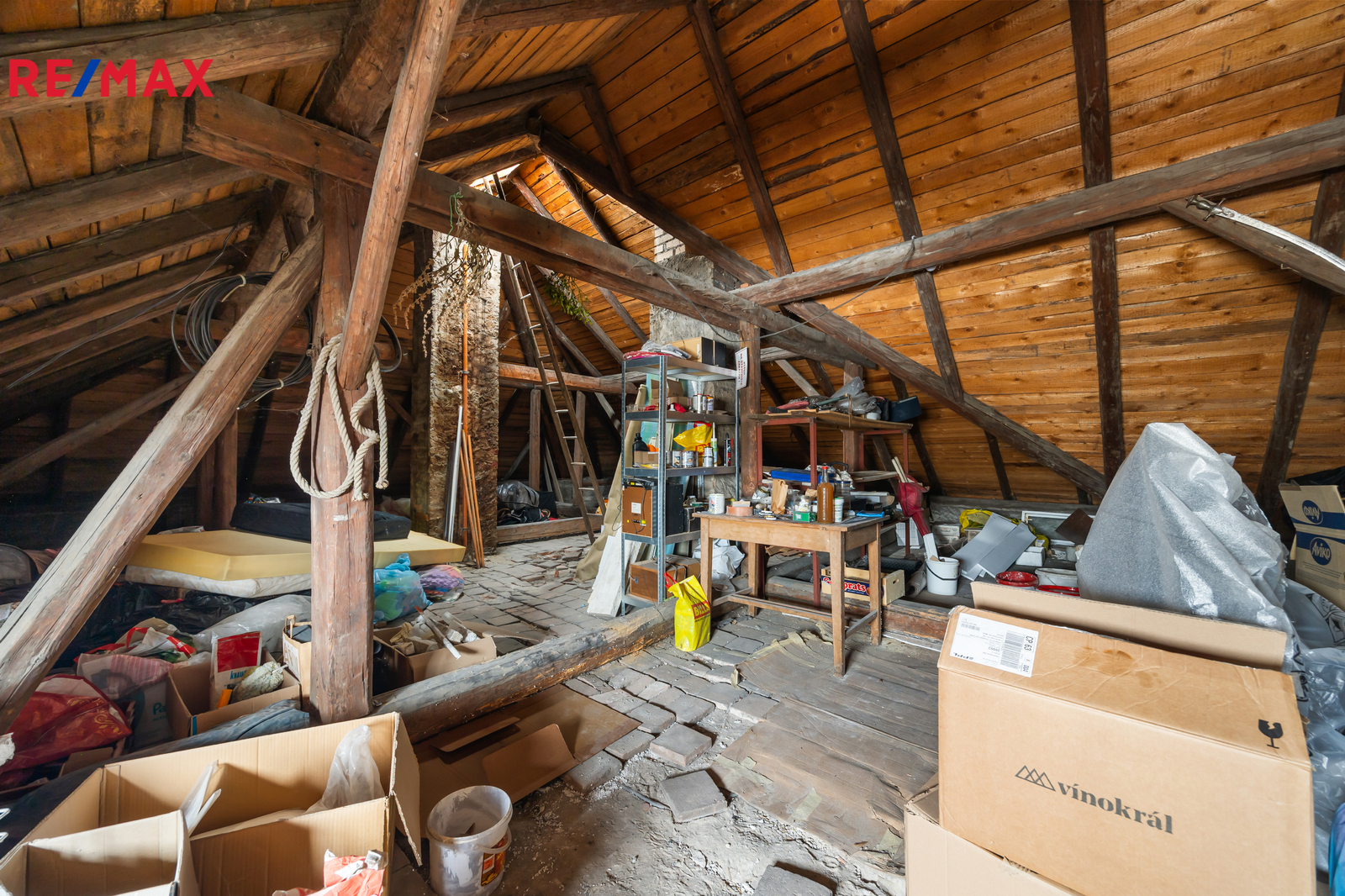 Podkroví je v tuto chvíli využito pouze na skladování věcí, nabízí ale další velkorysé prostory pro rozšíření bydlení. Přístup lze řešit bez nutnosti výrazně zasahovat do dispozic prvního podlaží.