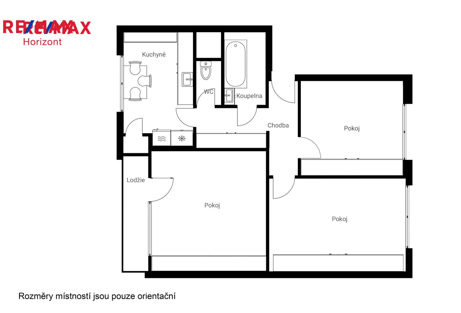 Dispozice bytu zahrnuje tři neprůchozí pokoje o velikostech 20,5 m², 14,0 m² a 17,4 m², kuchyň o výměře 10,5 m², předsíň, koupelnu, samostatné WC a praktickou lodžii. K bytu náleží prostorný sklep. Byt je v původním stavu a je určen k rekonstrukci, což dává novému majiteli možnost upravit si jej zcela podle vlastních představ. Jádro je zděné. Vytápění a ohřev vody zajišťuje vlastní plynový kotel umístěný v bytě.