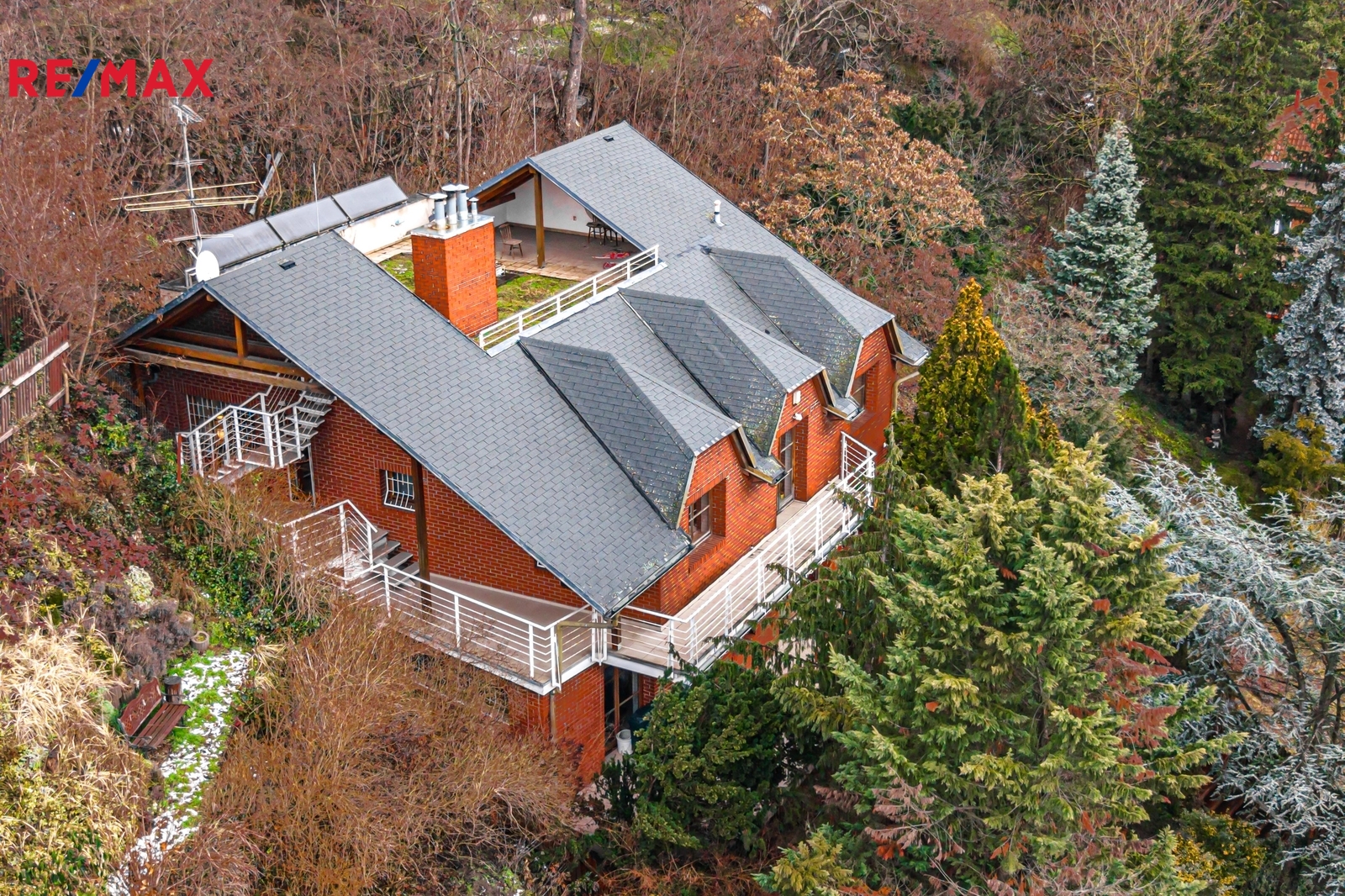 Použity jsou kvalitní materiály, jako dřevěná okna, dřevěné interiérové dveře a schody, plovoucí podlahy v kombinaci s keramickou dlažbou. Vytápění je řešeno plynovým kotlem. Samozřejmostí je zabezpečovací systém. Na terase se nachází vířivka a další unikátní prvek představuje zatravněná střecha s možností posezení a krásnými výhledy do okolí. Součástí domu je garáž.