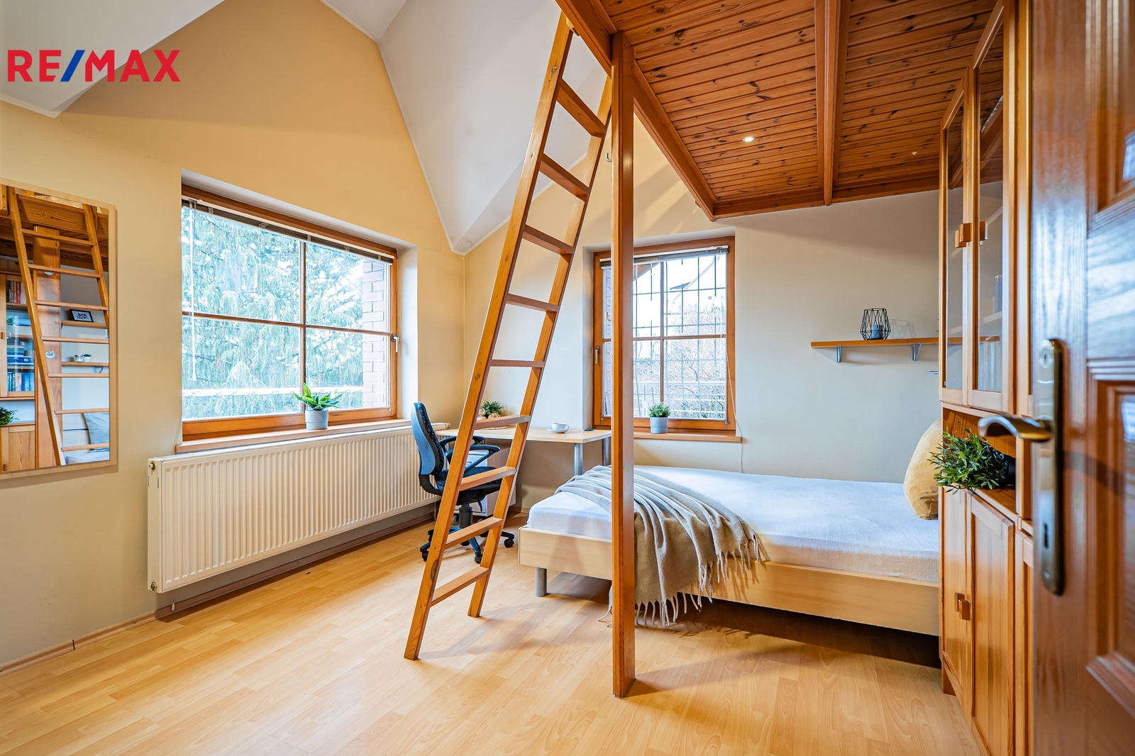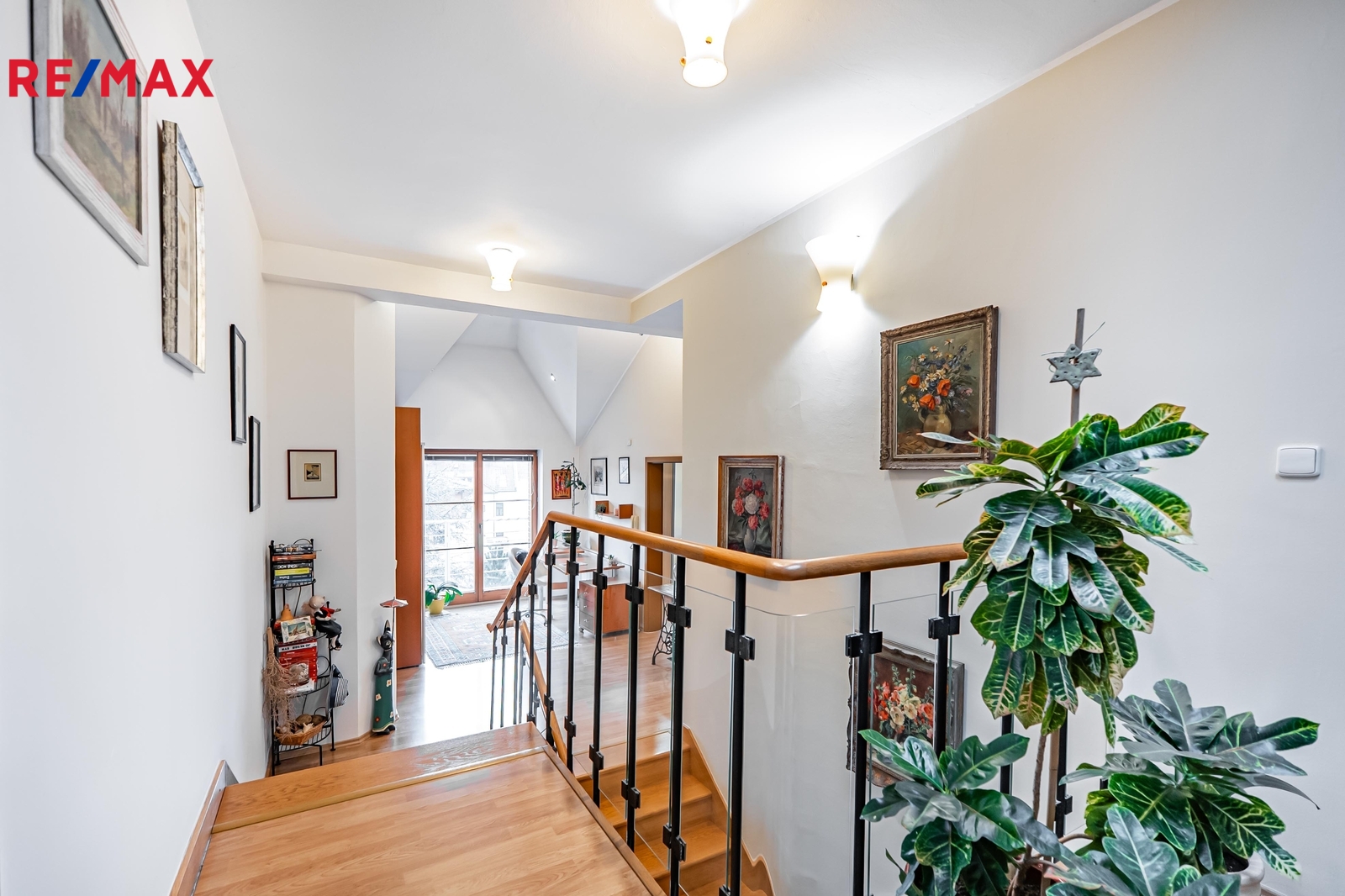 V přízemí se nachází velkorysý obývací pokoj se stylovým krbem a přímým vstupem na venkovní terasu i do samostatné místnosti s vnitřním bazénem. Oddělená kuchyně je vybavena prostornou kuchyňskou linkou se spotřebiči. Dále je zde zádveří, dvě technické místnosti a chodba s otevřeným dřevěným schodištěm, které podtrhuje vzdušnost celého prostoru. V patře je pět samostatných pokojů, otevřená pracovna s knihovnou, samostatná šatna a balkon. Dům disponuje celkem čtyřmi koupelnami a pěti toaletami, což zajišťuje maximální komfort pro všechny členy domácnosti.