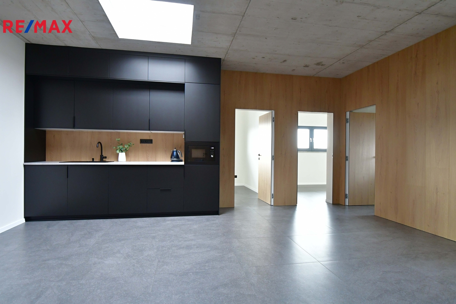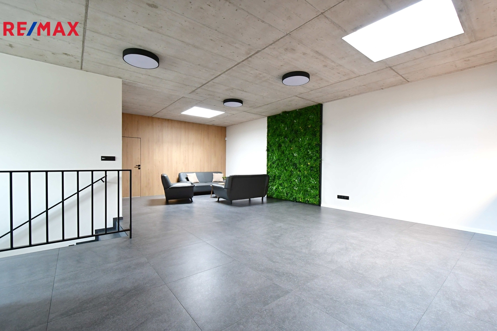 Kanceláře se nachází ve 2.NP novostavby a jsou částečně zařízeny. Velký společný prostor s kuchyňskou linkou, 4 samostatné kanceláře a 2 plně vybavené koupelny včetně sprchového koutu a WC (celková plocha 125 m2).