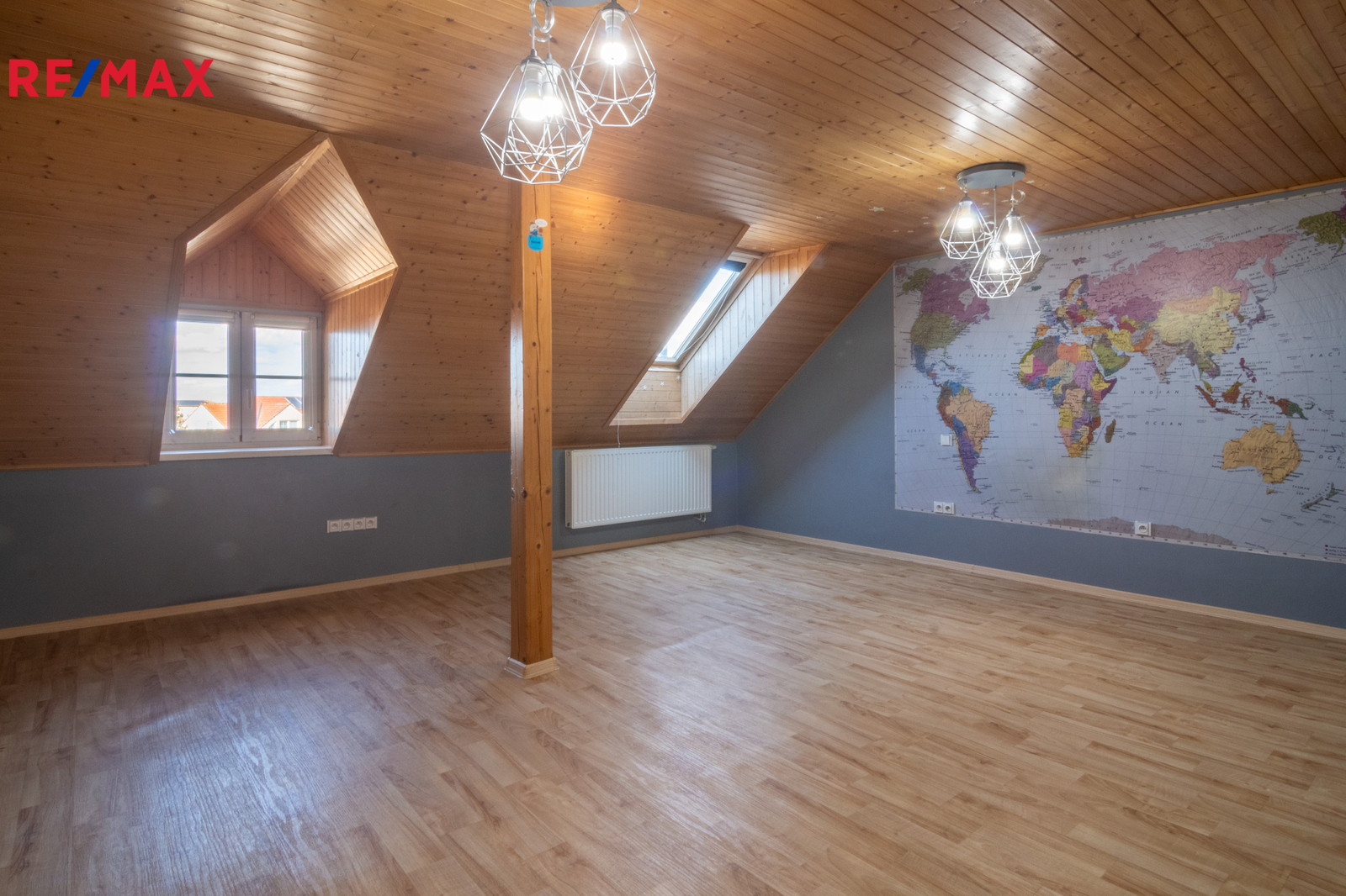 Dům má dispozici 4+1 a nachází se na pozemku o celkové výměře 247 m2. V přízemí najdete prostorný obývací pokoj s výměrou více než 35 m2, dále ložnici, kuchyni s jídelnou a koupelnu s vanou, sprchovým koutem a toaletou. Další samostatná toaleta je se vstupem z chodby. V obytném podkroví se pak nachází prostorná hala, ze kterou vedou vstupy do jednotlivých místností - 2 dětských pokojů (každý s výměrou cca 24 m2), pracovny, šatny a koupelny, která opět nabízí vanu, sprchový kout a toaletu.