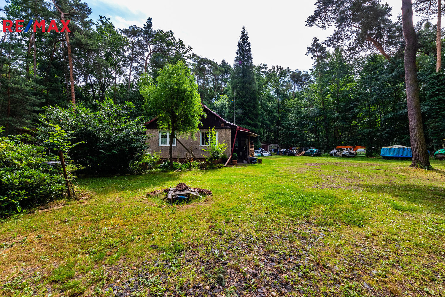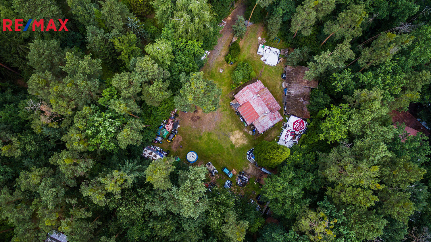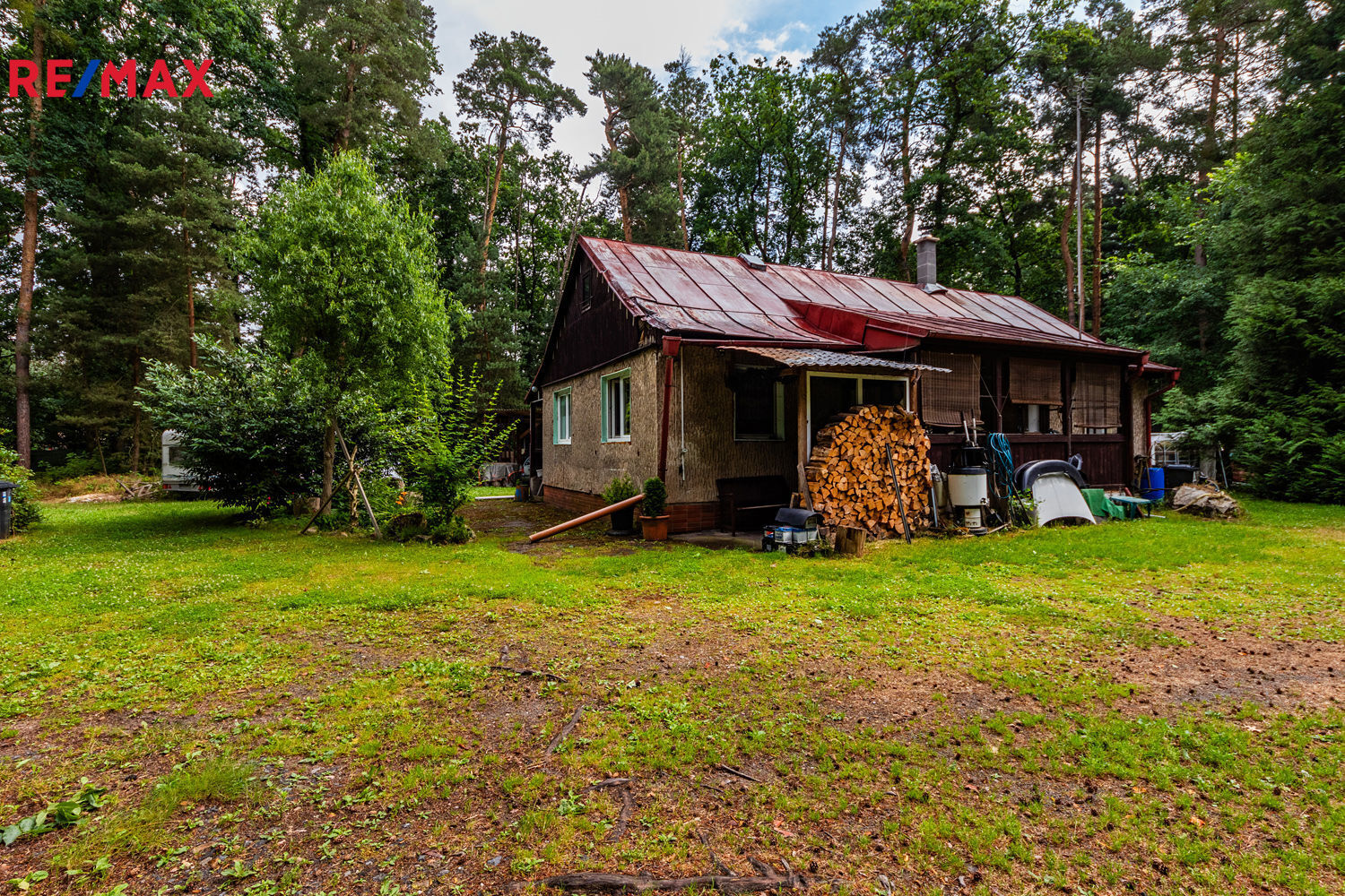 Pozemek se nachází 100m od autobusové zastávky a 200m od chaty pana Hrabala.