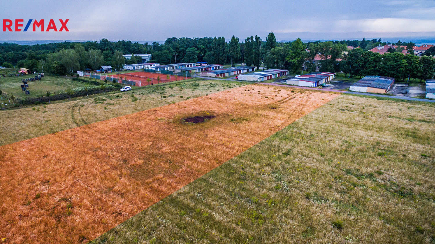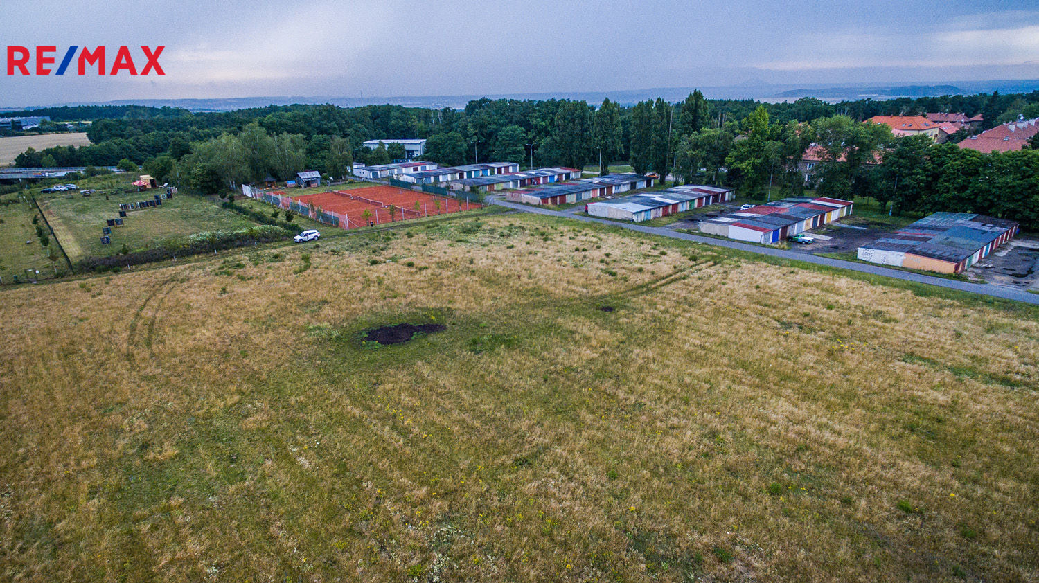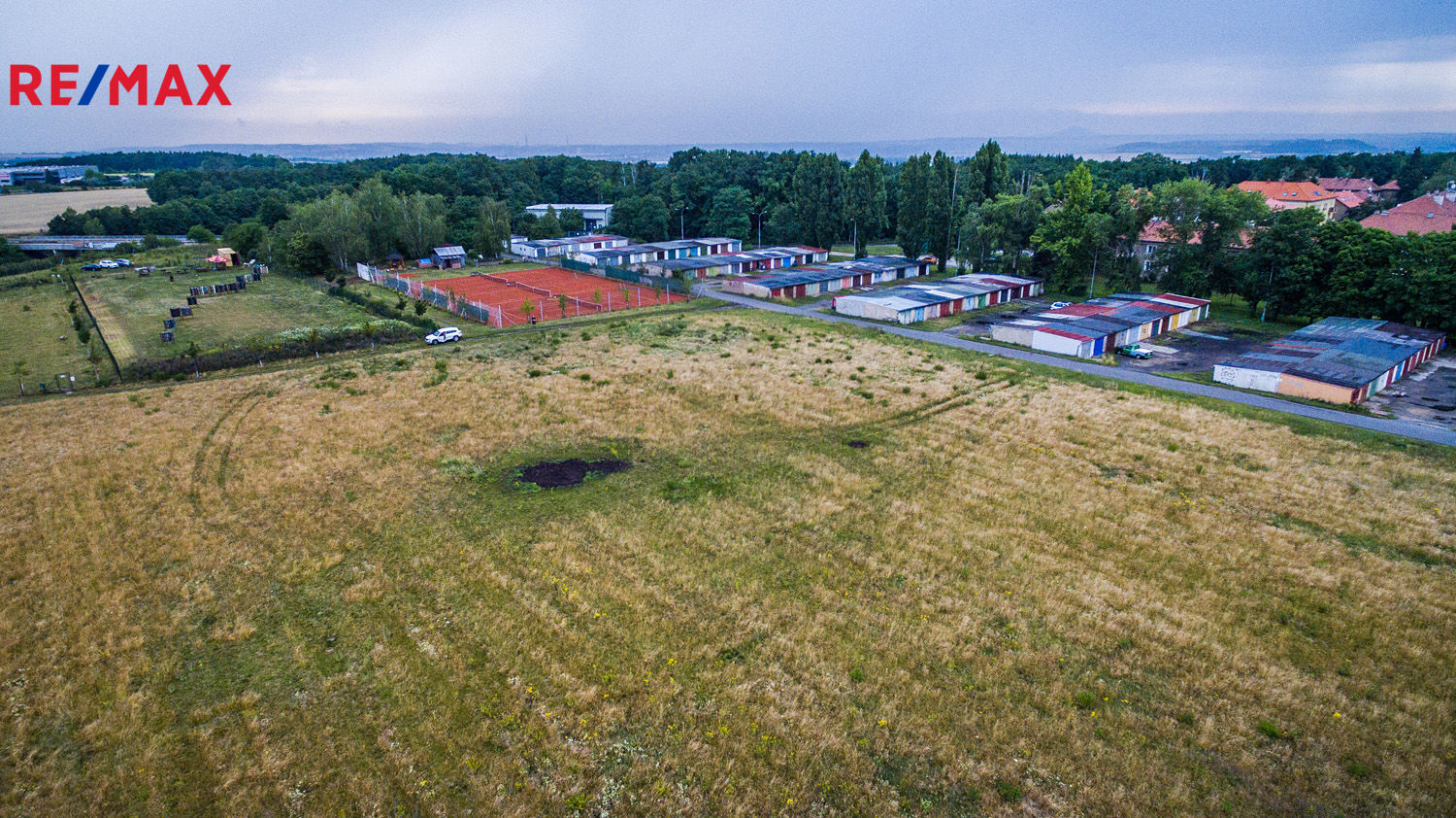 Pozemek se nachází vedle tenisových kurtů a souborů garáží, mezi ulicemi "Květnová" - "U Kurtů" (na tuto ulici je pozemek přímo napojený) - "Ke Stadionu".