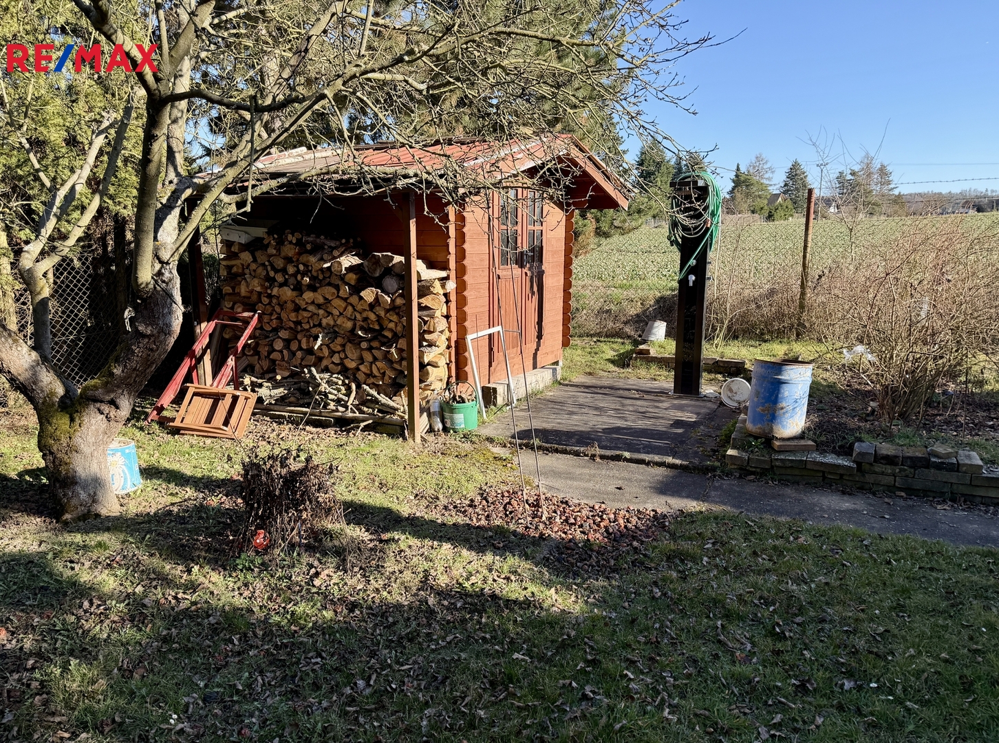 Na pozemku je vlastní čistička odpadních vod s přepadem do nádrže s možností využití zálivky. Nový hluboký vrt s pitnou vodou a dvě kopané studny s vodou k zálivce zahrady.