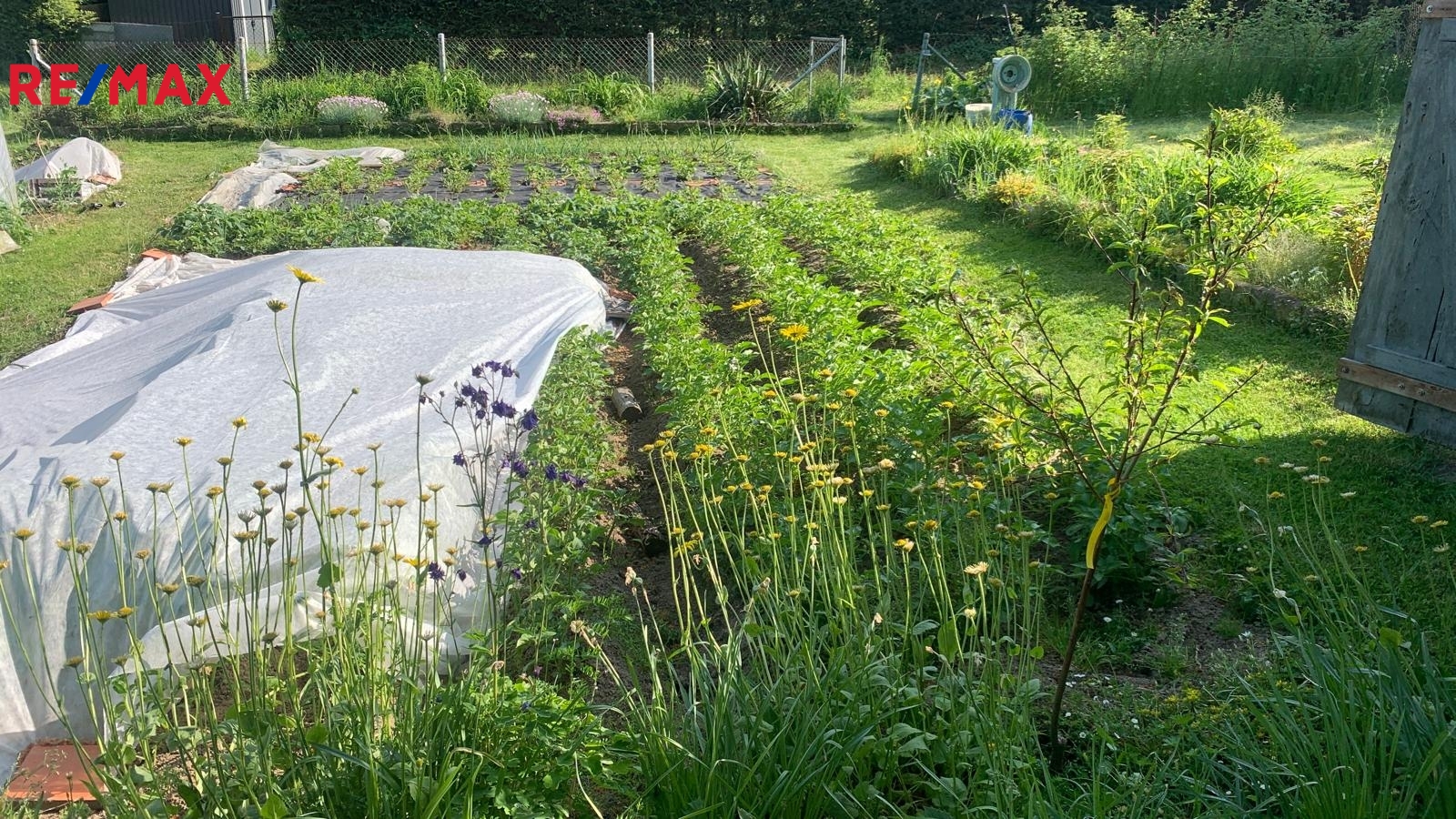 Pozemek je vedenými jako zahrada a je tvořen čtyřmi samostatnými parcelami, což umožňuje případné rozdělení na dva či více menších celků. Mírná svažitost a jižní orientace zajišťují dostatek slunce po celý den. Spodní částí pozemku protéká potok, který díky stavební úpravě slouží jako na vodní nádrž a nabízí dostatečné množství vody.