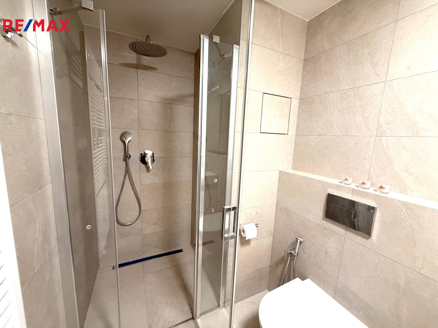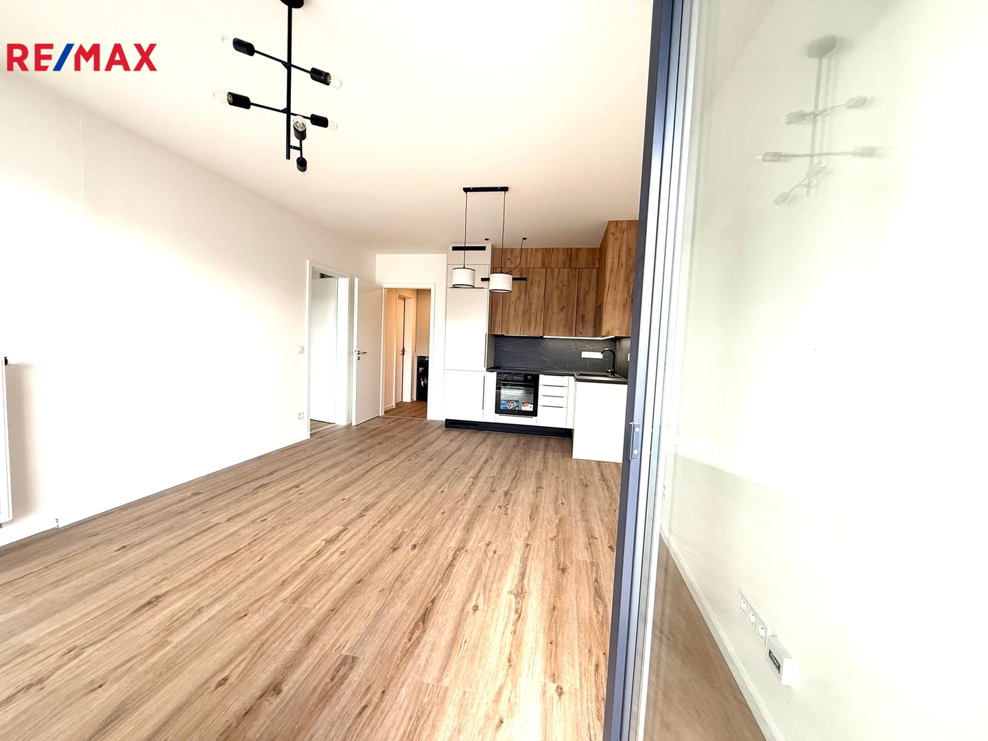 Interiér bytu je je moderně zařízen pro maximální komfort nájemníka. Vstupní předsíň disponuje vestavěnou skříní se zabudovanou pračkou. Koupelna je moderně zařízena a vybavena velmi komfortním sprchovým koutem. Obývací pokoj tvoří z části moderní kuchyňská linka ve tvaru L s vestavěnými spotřebiči (lednice, trouba, varná deska, digestoř a myčka nádobí) a obývací část se vstupem na balkon. Na obývací pokoj navazuje prostorná ložnice s velkou vestavěnou šatní skříní. Velká okna zajišťují oběma pokojům dostatek přirozeného světla a pocit vzdušnosti.
