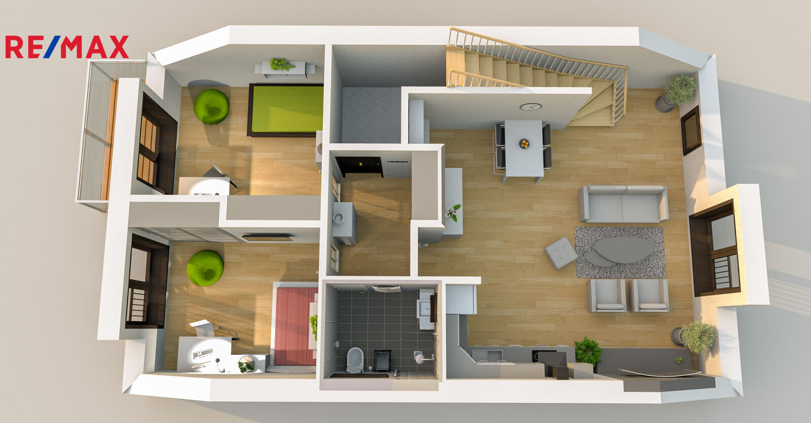 Pro Vaši lepší představivost přikládám půdorysy + vizualizace jednotlivých místnotí.