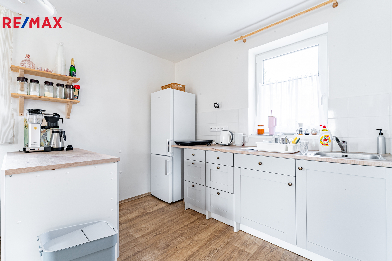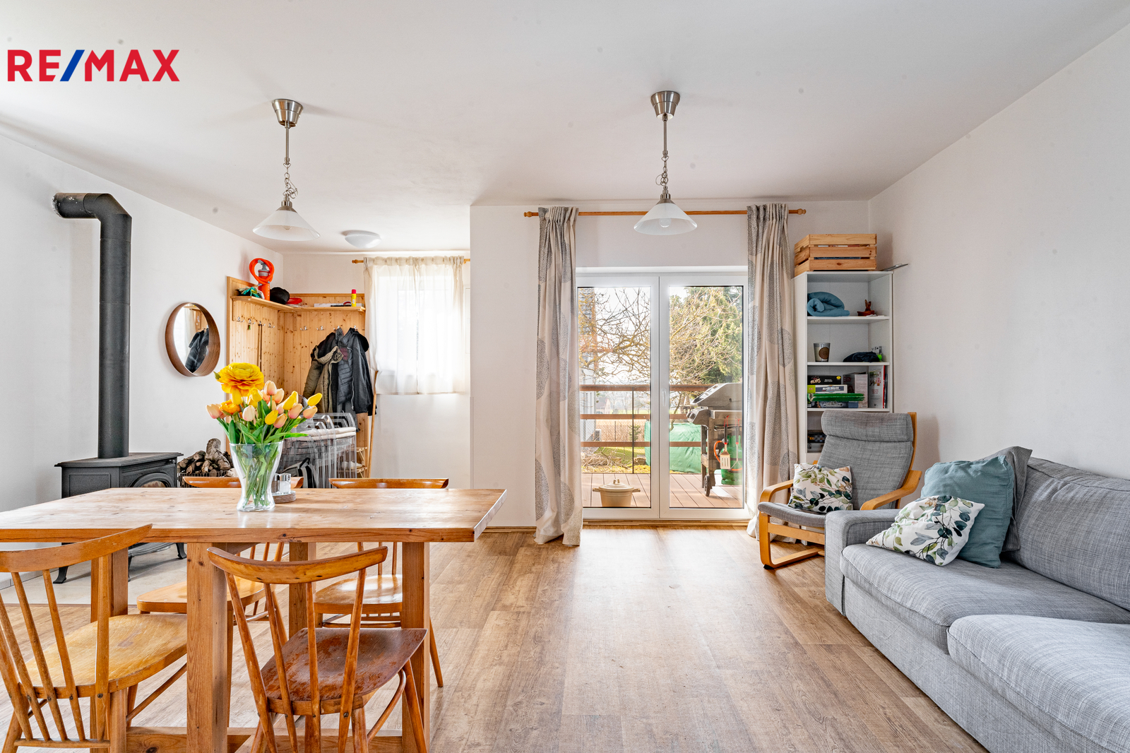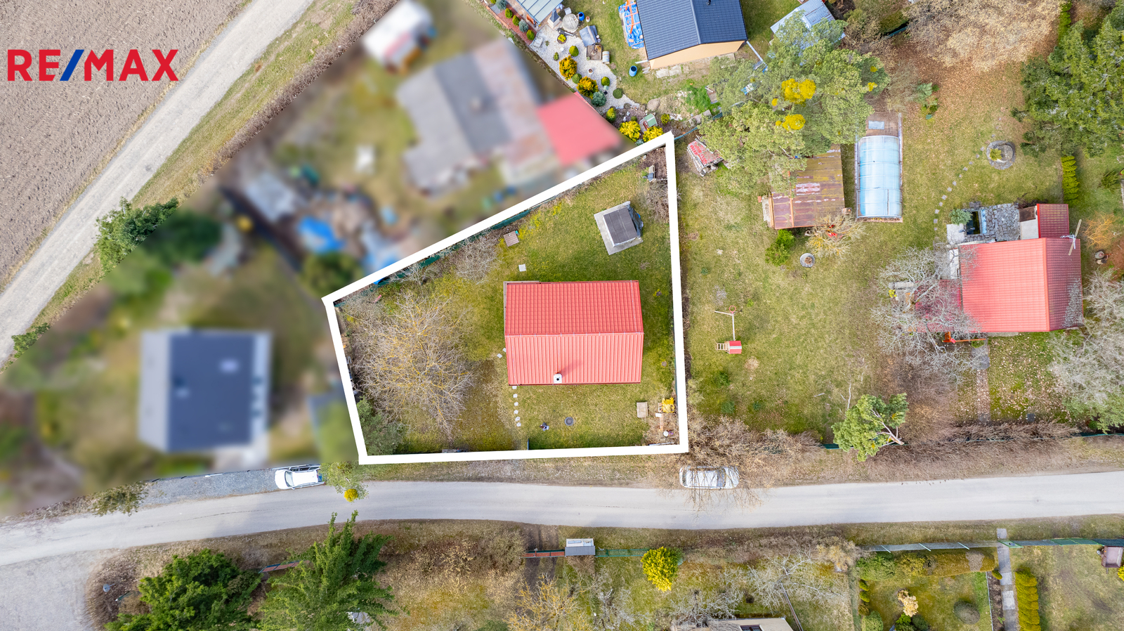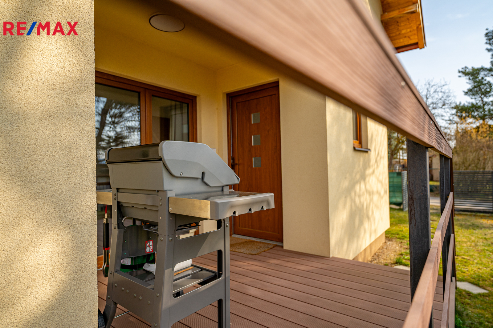 Zahradě dominuje vzrostlý ořech, nářadí lze uschovat do zahradního domku a důležitým přínosem pro zahrádkaření je retenční nádrž na dešťovou vodu o velikosti 3m3, která zajišťuje dostatek vody na zalévání. Vjezdová brána na zahradu je pro maximální pohodlí automatická.