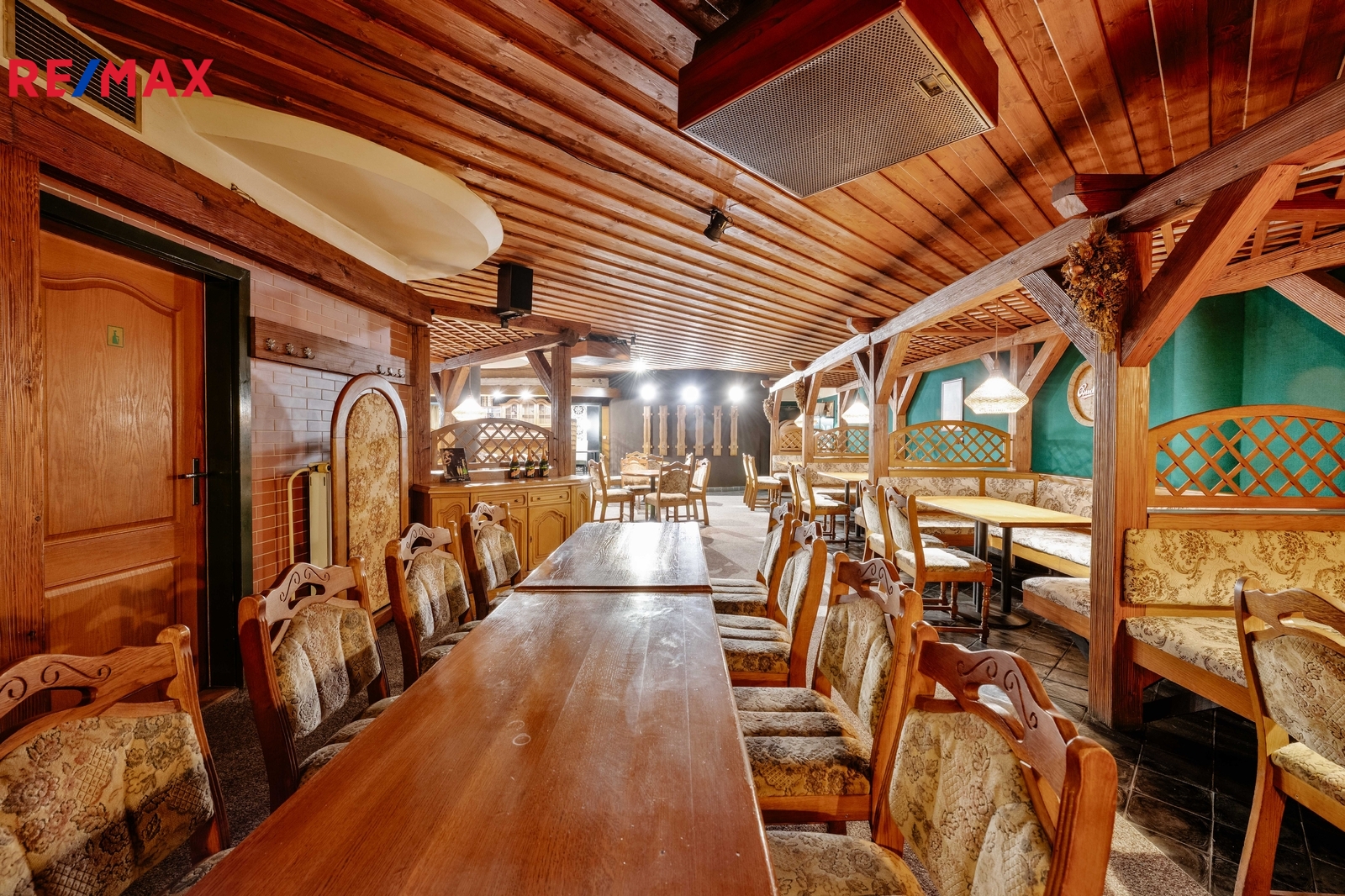 Dispoziční řešení: Hlavní část tvoří restaurace s barem pro cca 70 osob, salonek s kapacitou pro cca 20 osob, prostory přípravny/výrobny, kancelář, chladící box, šatna se sprchou pro personál, WC pro muže, ženy a personál, chodba, úklidová komora, strojovna výtahu, výtah a schodiště.