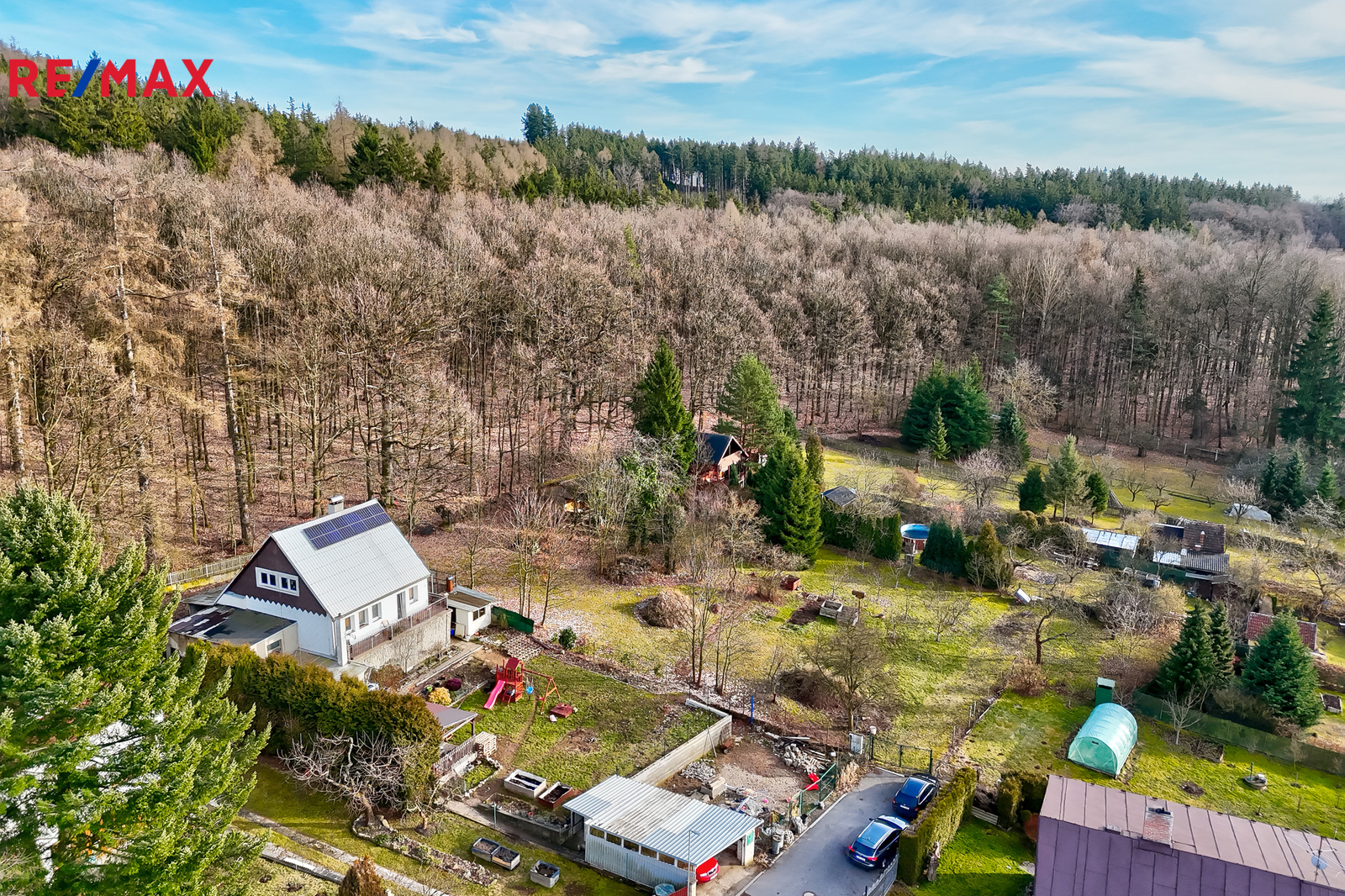 Dům má zastavěnou plochu 139 m², užitnou plochu 203,6 m² a nachází se na pozemku o velikosti 910 m², který nabízí dost prostoru pro zahradu i venkovní úpravy. Lokalita je klidná, u lesa, se soukromím a příjemnou atmosférou – dům může dobře posloužit jak pro rodinné bydlení, tak i jako rekreační chalupa na víkendy a léto. Díky orientaci je na pozemku i v domě dostatek denního světla.