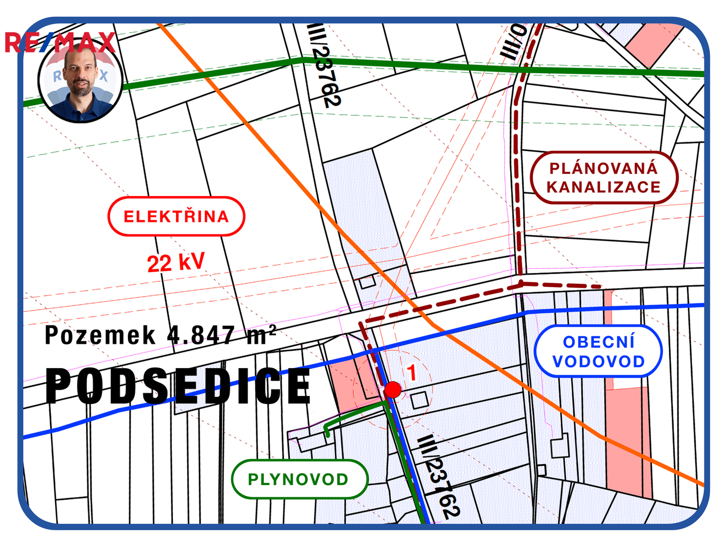 • Elektřina na hranici pozemku, voda a kanalizace v dosahu dle územního plánu (projekt počítá s jímkou).