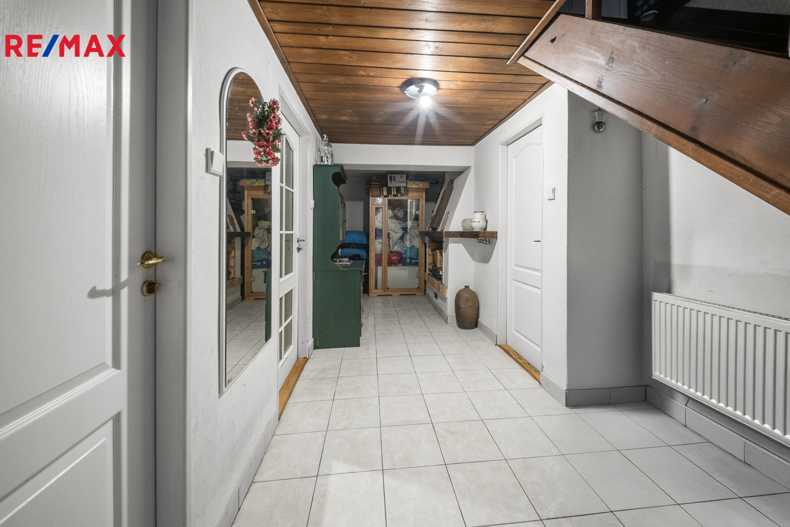 Dům je celý podsklepený – najdete zde prádelnu, velký sklep na zavařeniny a zásoby, dílnu, technickou místnost a garáž pro dvě auta stojící za sebou.