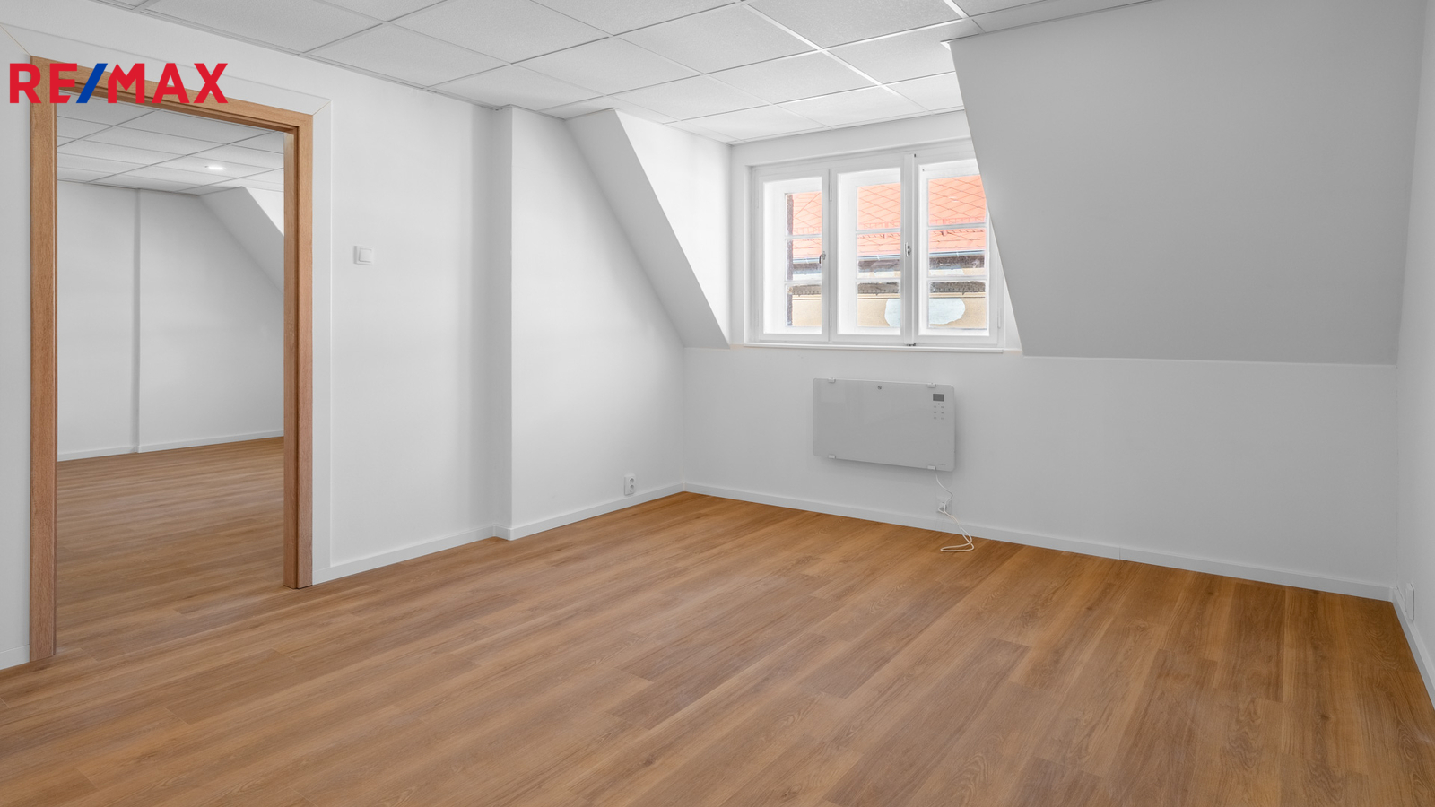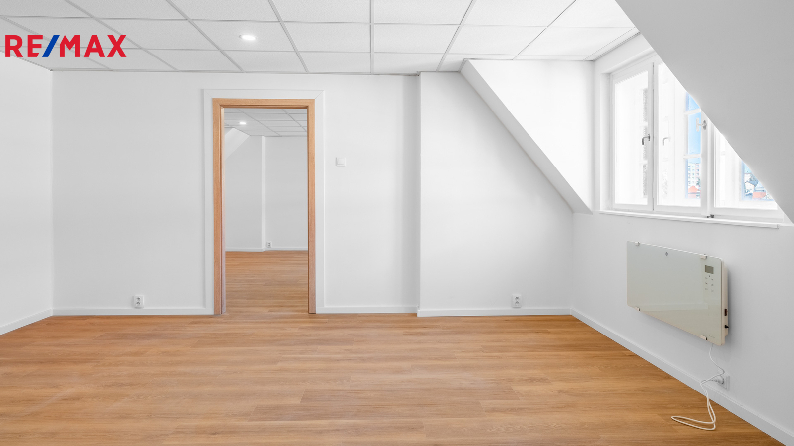 Byt prošel rekonstrukcí, včetně položení nových podlah a renovací oken. Dispoziční řešení bytu je patrné z přiloženého půdorysu. Interiér nabízí podkrovní charakter s dostatkem světla.