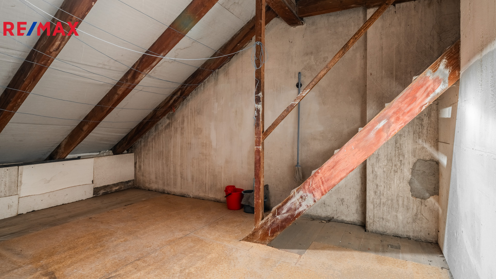 K bytu náleží sklep a k dispozici jsou také další úložné prostory na půdě.