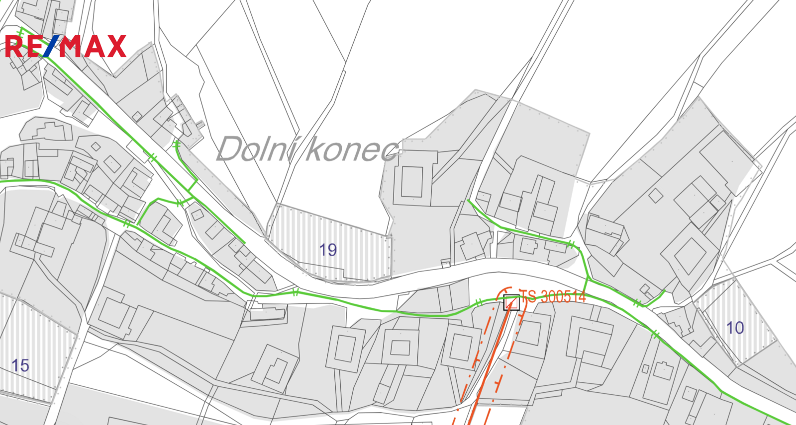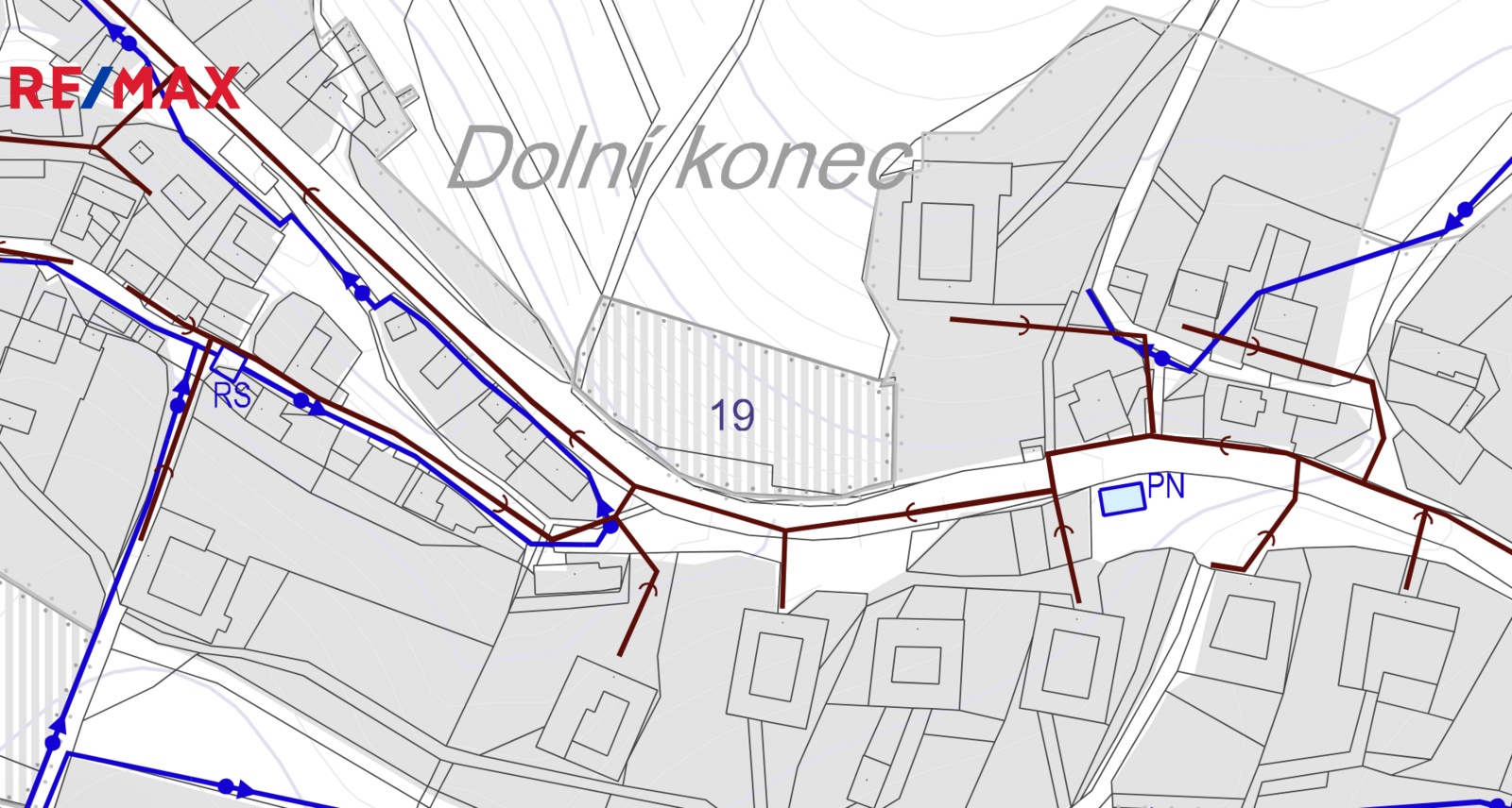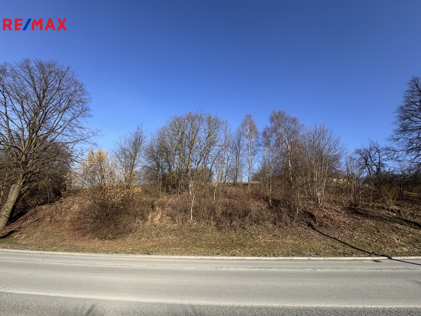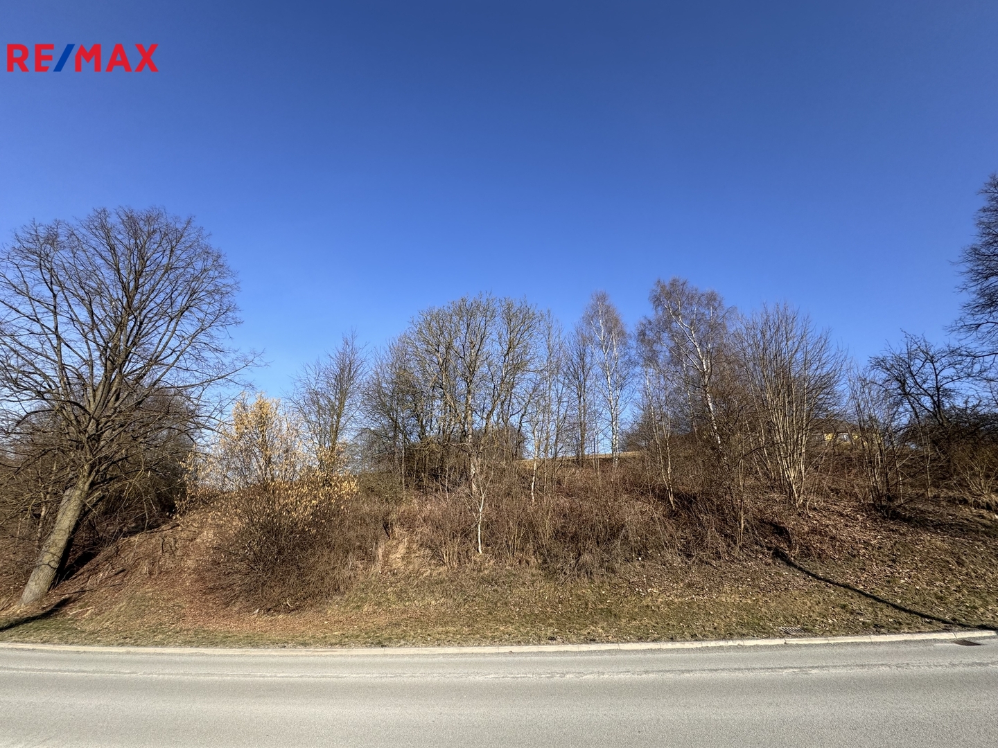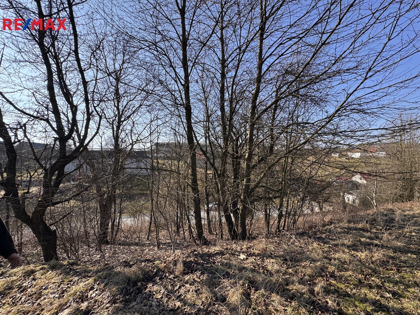 Pozemek je svažitý, slunný s výhledem. Možnost stavby patrového domu s využitím svahu např. na garáž a sklep.