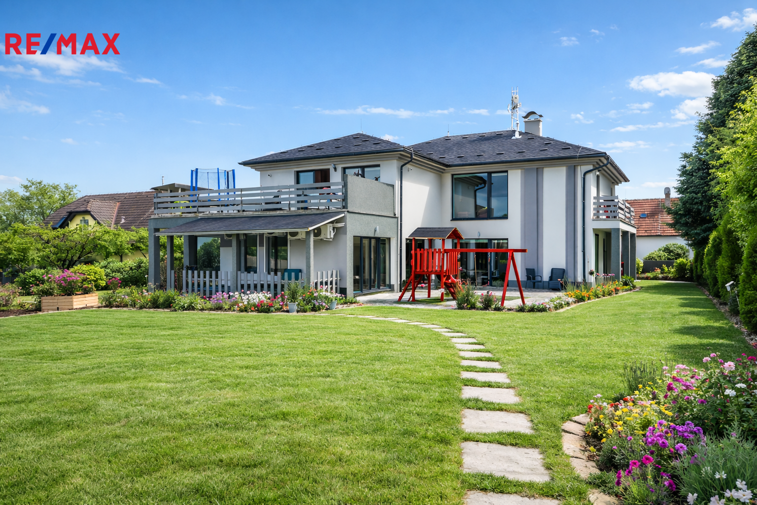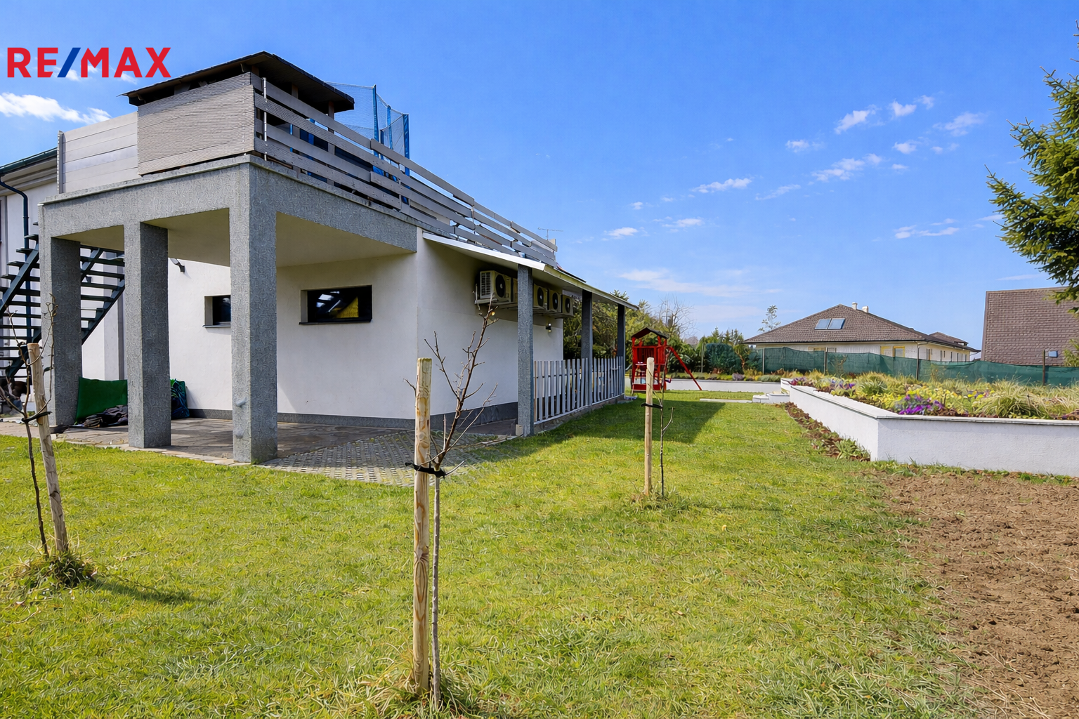 K domu náleží dvě kaskádové terasy a dvůr vydlážděný přírodním kamenem.