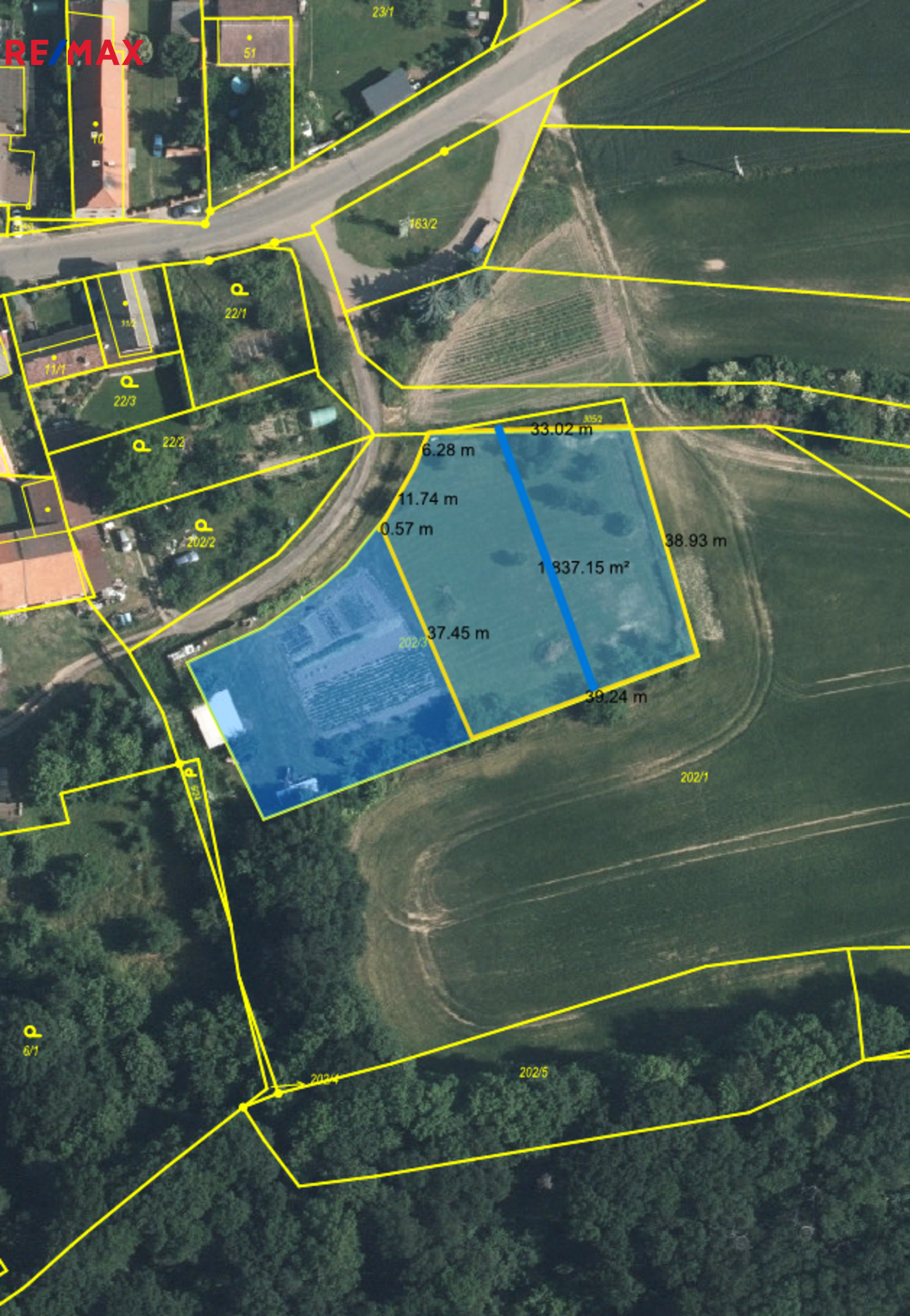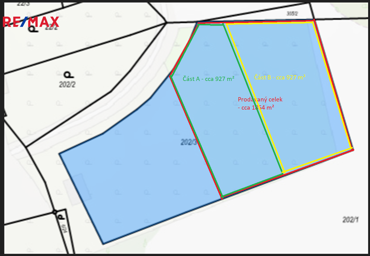 Vzhledem k velikosti pozemku se nabízí také možnost jeho rozdělení na dvě samostatné části. Rozdělení zajistí majitelka po dohodě s kupujícím.