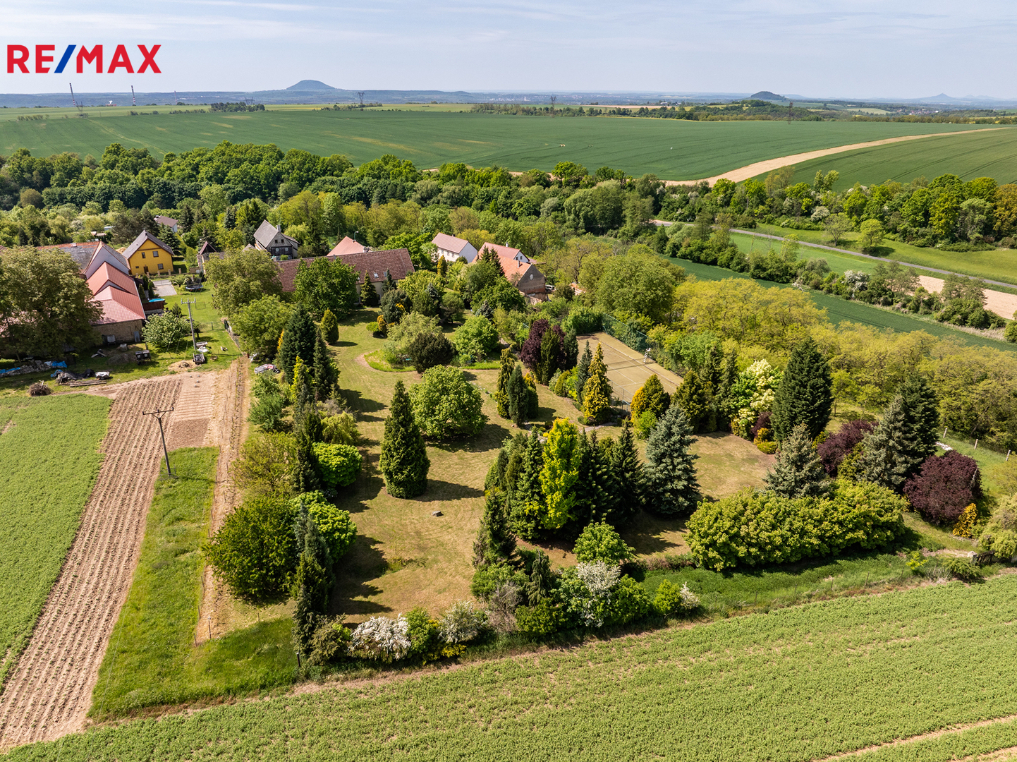 A za tím vším? Okouzlující zahrada zámeckého stylu o rozloze 6 160 m² se vzrostlými dřevinami, altánem, tenisovým kurtem, romantickým jezírkem a velkým podzemním rezervoárem na vodu. Ten zajišťuje soběstačnost v zásobování vodou pro instalovaný závlahový systém.