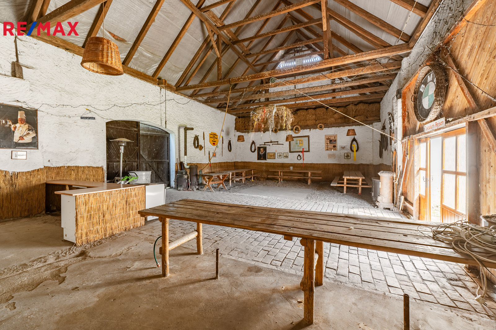• Stodola (cca 130 m²) – krytý prostor pro posezení početné skupiny hostů, rauty, svatební obřady apod.