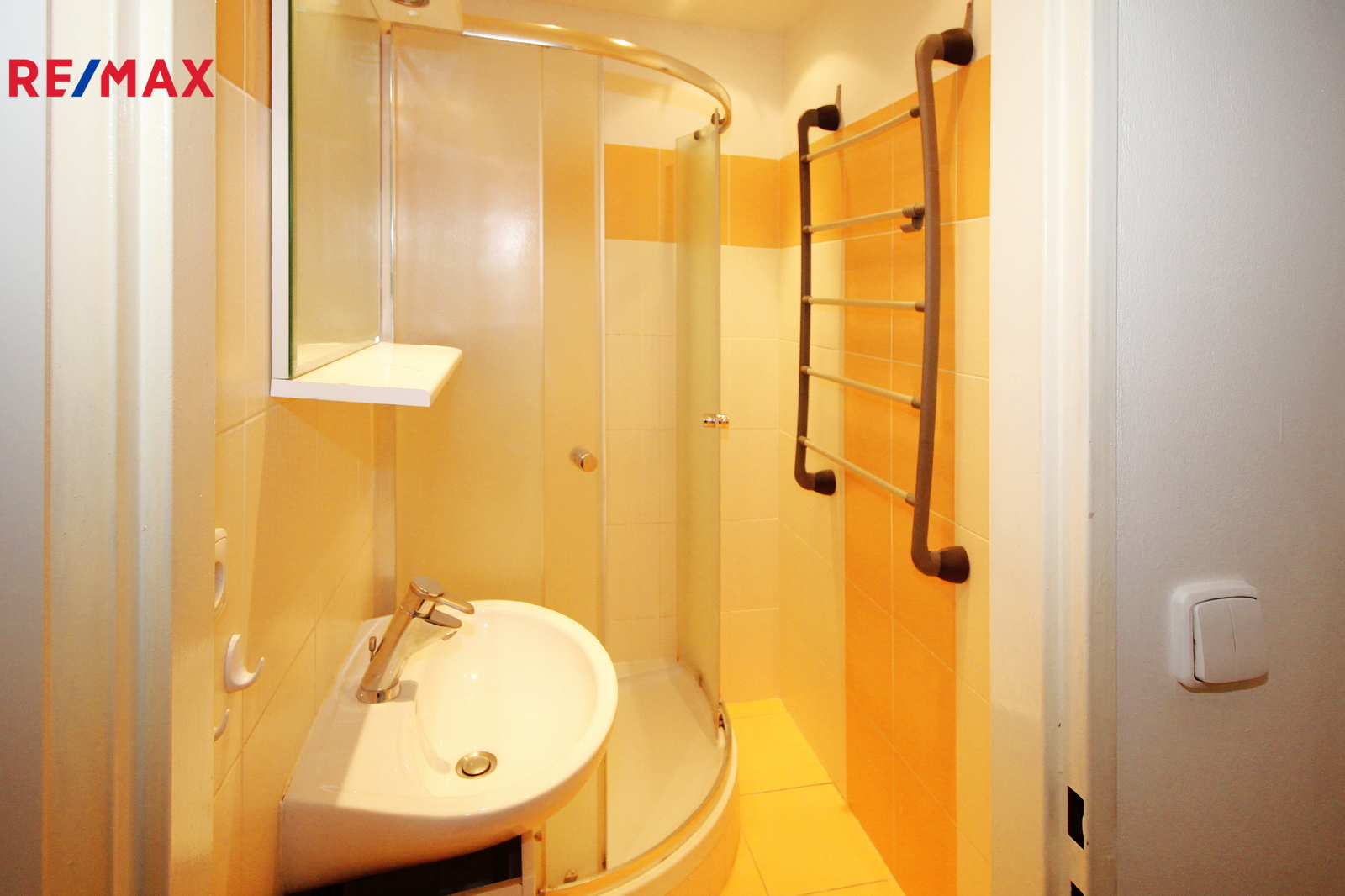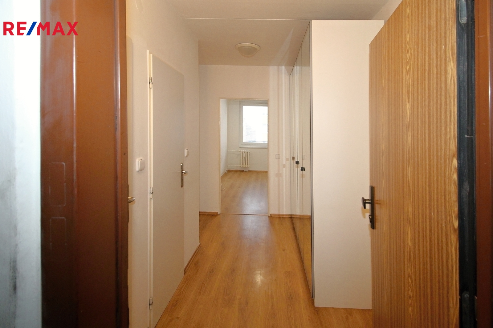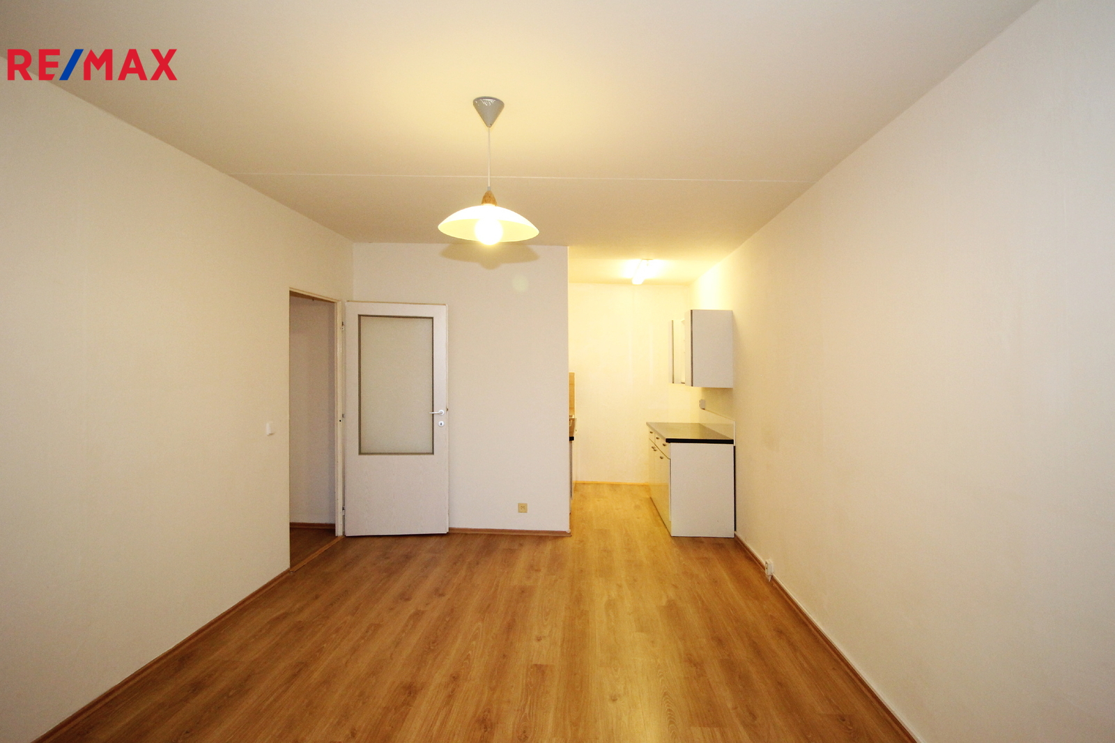 Dispozice: předsíň s vestavěnou skříní, samostatné WC, koupelna se sprchovým koutem, ložnice a obývací pokoj s kuchyňským koutem.