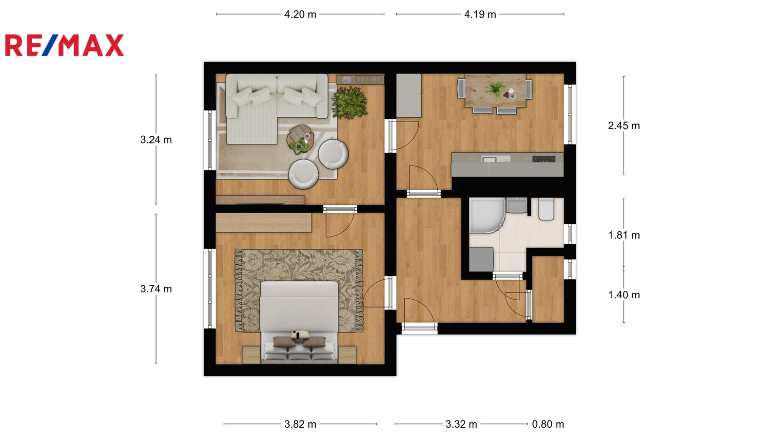 Byt se nachází ve 3. patře menší bytového domu, který je kompletně zateplený a je celkově v dobrém udržovaném stavu. Samotný byt poskytuje díky své užitné ploše 50 m² dostatek obytného i úložného prostoru. Díky orientaci oken na dvě různé světové strany působí místnosti příjemně vzdušně a slunně. Byt prošel cca před deseti lety rekonstrukcí předešlým majitelem, takže zde nejsou nutné žádné zásadní úpravy a investice a lze jej rovnou využívat nebo pronajímat. Dispoziční uspořádání jednotlivých místností je nejlépe patrné z vizualizace ve fotogalerii. Součástí bytu je také komora v rámci bytu a 2 samostatné sklepy v suterénu.