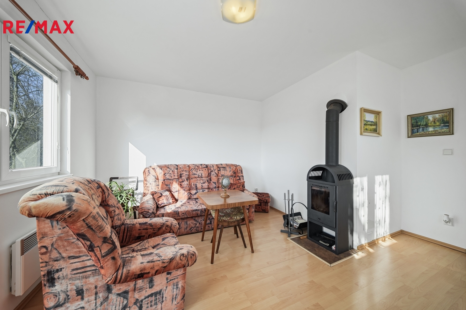 Interiér domu působí útulně. Nemovitost se pronajímá kompletně vybavená, takže se můžete bez starostí rovnou nastěhovat. Příjemnou atmosféru v domě vytvářejí krbová kamna, která jsou doplněna elektrickými přímotopy, což umožňuje flexibilní vytápění během celého roku.