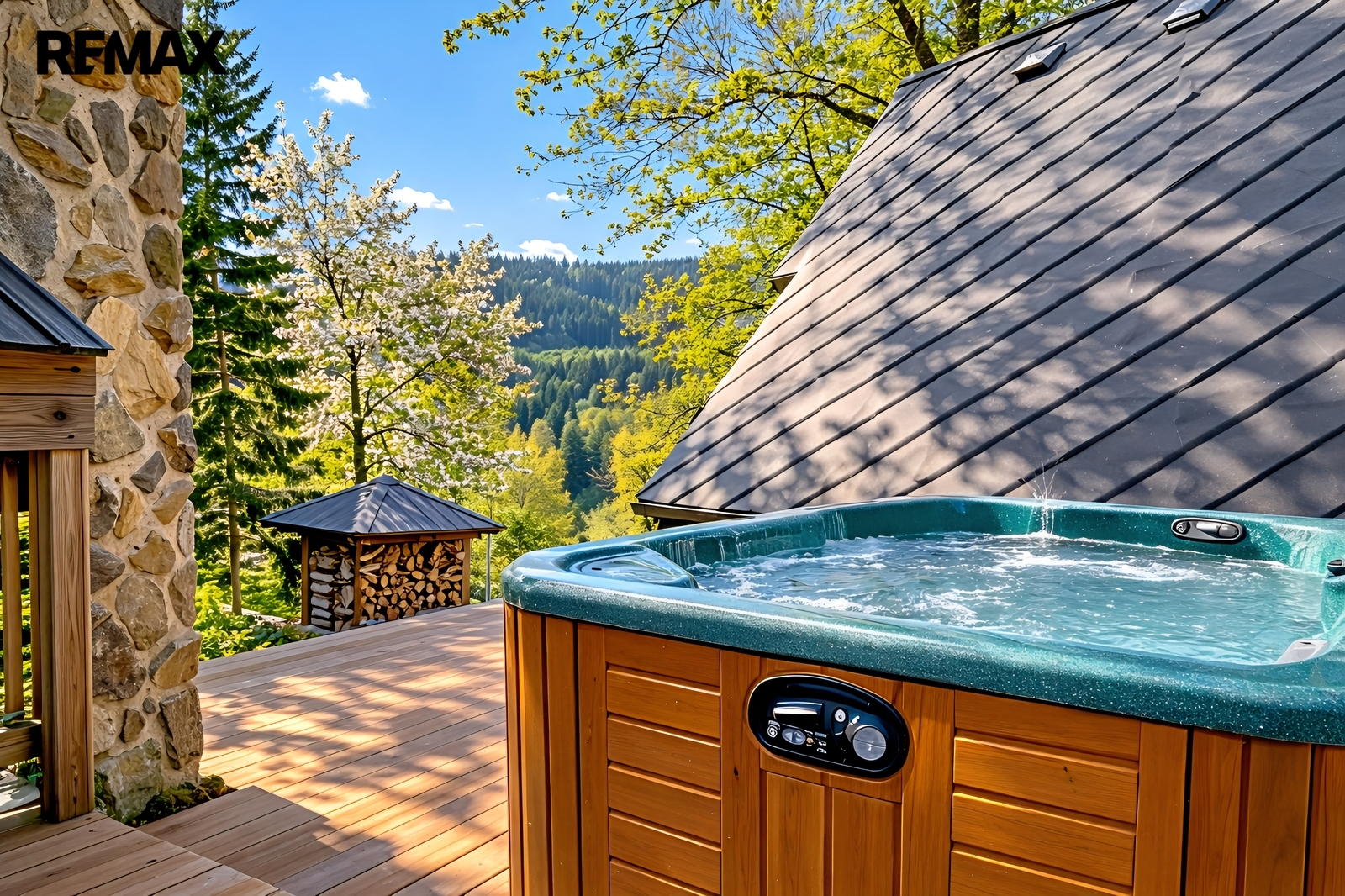 V přízemí se nachází prostorná, do detailu vybavená obytná kuchyně s jídelnou, ideální pro velké rodinné setkání či přátelské posezení. Atmosféru dotváří krásná kachlová kamna a stylová replika místních stojacích hodin s původním strojkem. Součástí přízemí je i odpočinková místnost, využitelná i jako ložnice s vlastní koupelnou vybavenou špičkovou saunou KLAFS (finská sauna, saunarium, infrasauna) a parní sprchou KERAMAG AURA. Samozřejmostí je i samostatné WC. V zadní části domu se nachází moderní kotelna a původní kamenný sklep se stálou teplotou. Dispozici přízemí dále tvoří místnost s výjimečným atraktivním prvkem - přiznanou skalní stěnou, po níž jemně stékají pramínky vody. Další místnost, která je vybavená barem a elektrickým krbem zn. ELEMENT, tvoří společenskou část chalupy a navazuje na ní kinosál vybavený technikou B&W. Z této místnosti je vstup na spodní venkovní terasu. Nad tímto křídlem se nacházejí dvě ložnice s vlastní koupelnou a jedna je se vstupem na druhou vyvýšenou venkovní terasu, která je vybavená stylovým nábytkem EcoFurn, Solo Stove.