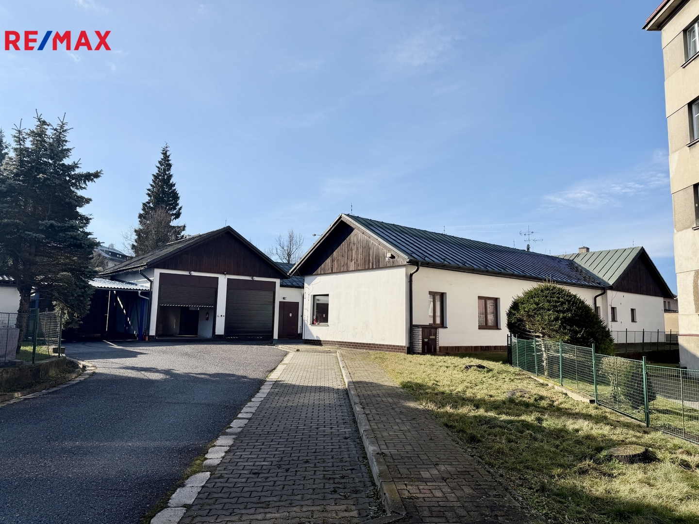 Objekt nabízí praktické dispoziční řešení s dostatkem místností, zázemím pro zaměstnance i parkováním.