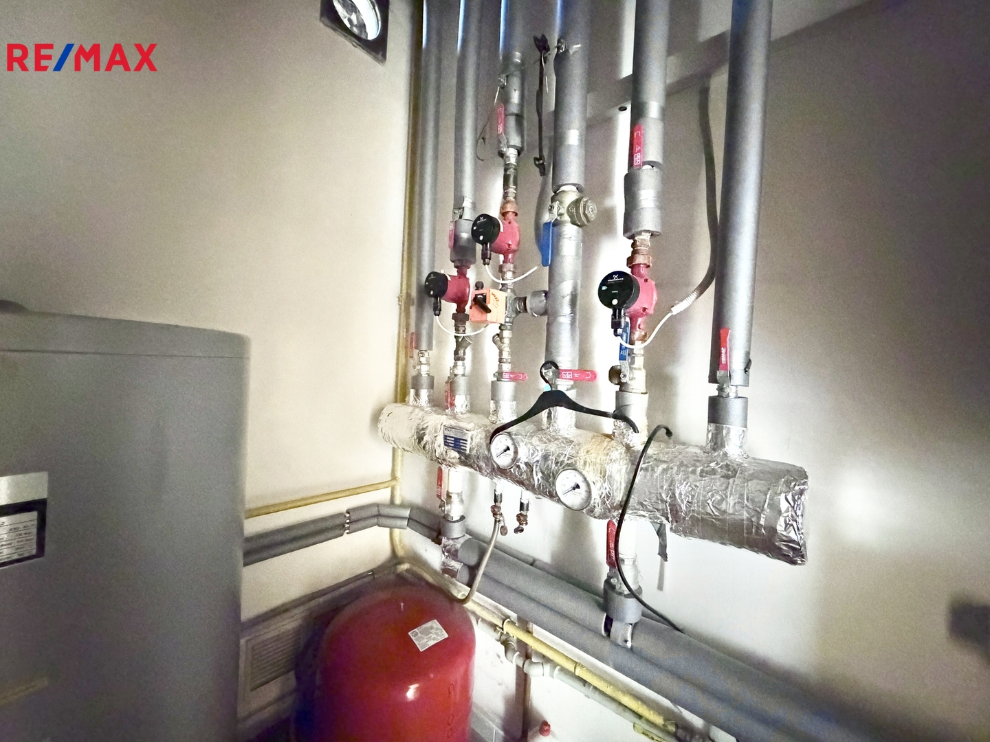 V objektu - obecní vodovod, napojen na kanalizaci, elektřina 220 W a 380 W, ohřev vody a vytápění plyn.