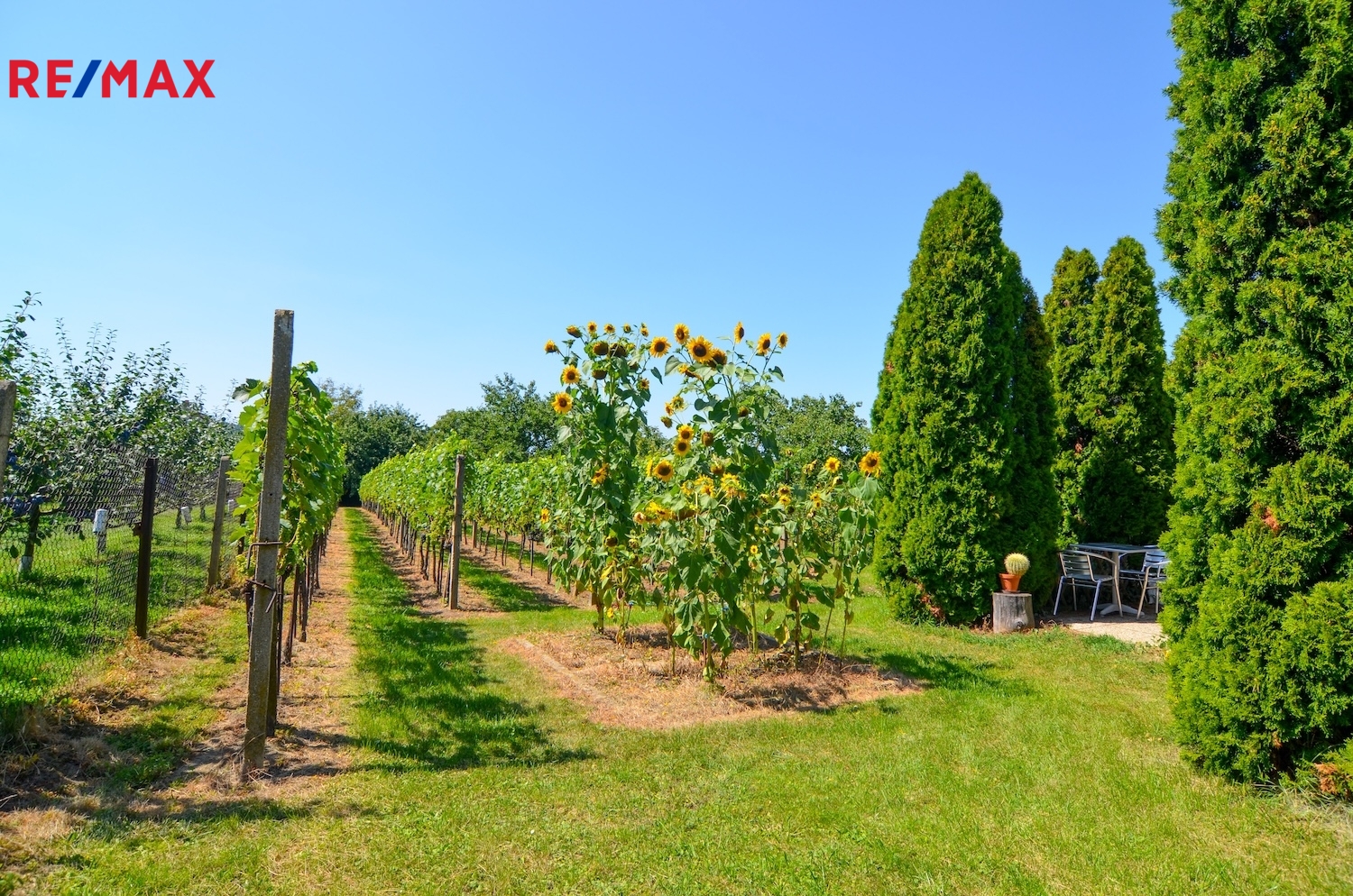 Na zahradě je v současné době cca 260 hlav vinné révy, především se jedná o odrůdy ryzling vlašský, veltlínské zelené a samozřejmě také několik hlav stolní vinné révy. Dále zde najdeme i několik ovocných stromů - 2 × meruňka, 3 × jabloň, 2 × rakytník, třešeň.