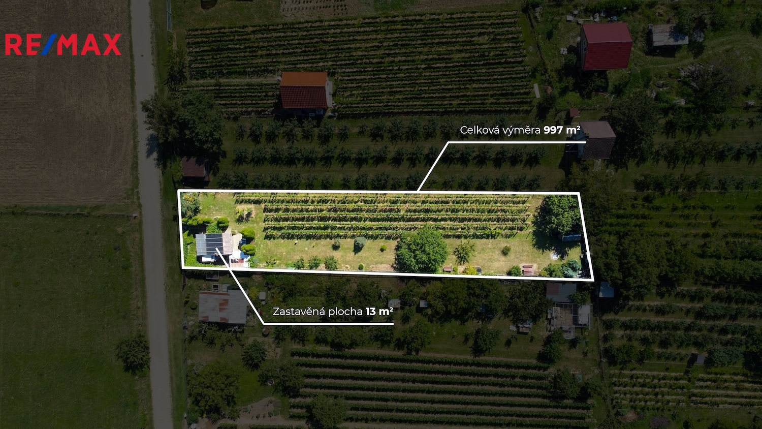 Nabízíme k prodeji zahradu o výměře 997 m² v zahrádkářské kolonii v bezprostřední blízkosti Mikulova. Pozemek o rozměrech přibližně 13,5 × 74 metrů má lehce svažitý terén a nabízí široké možnosti využití – ideální pro pěstování, rekreační pobyt i víkendový odpočinek.