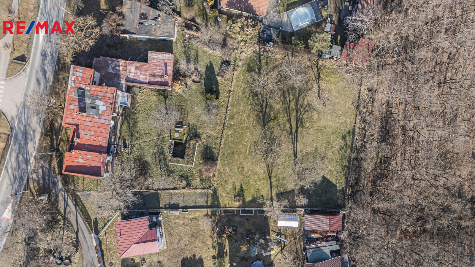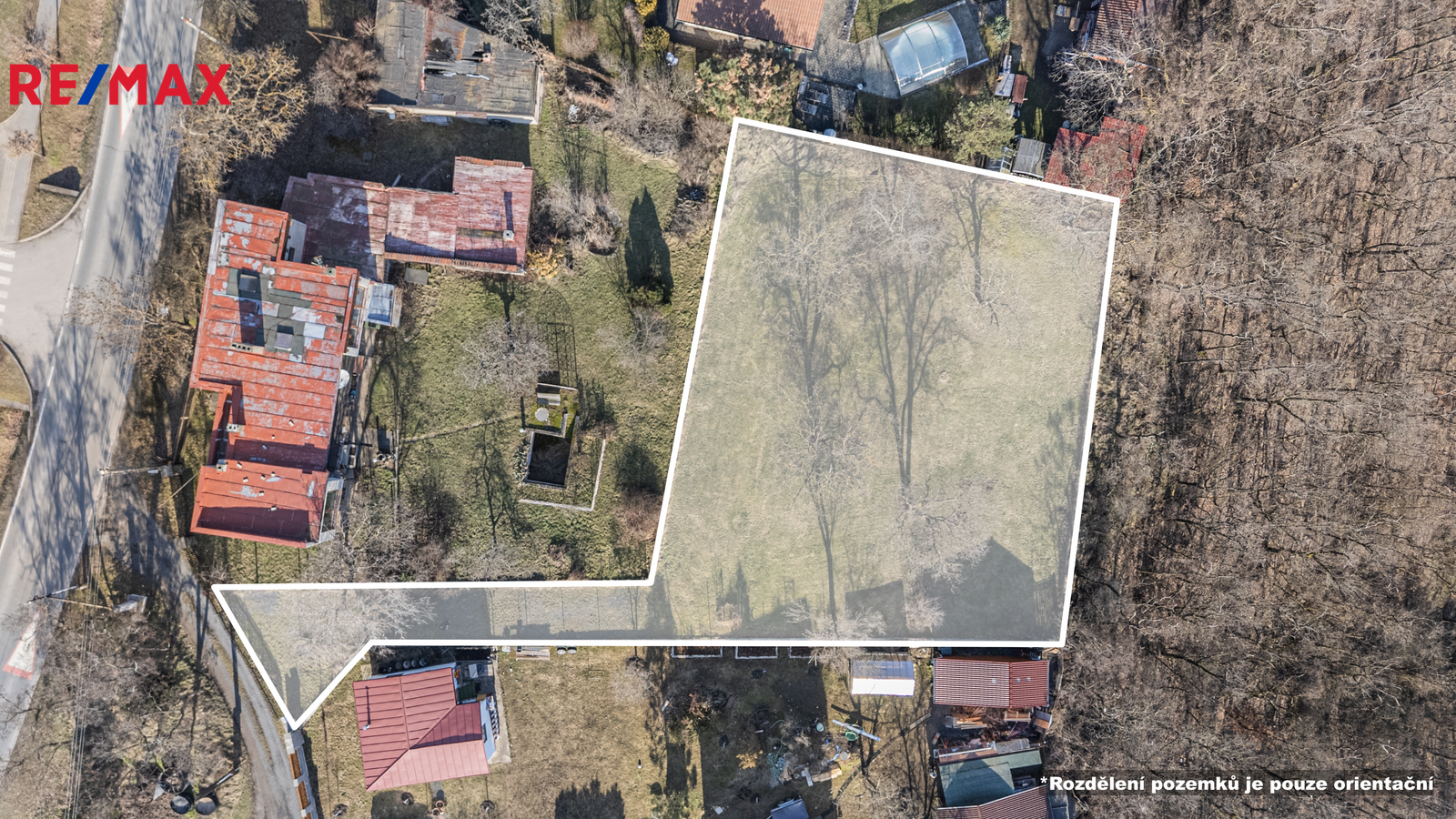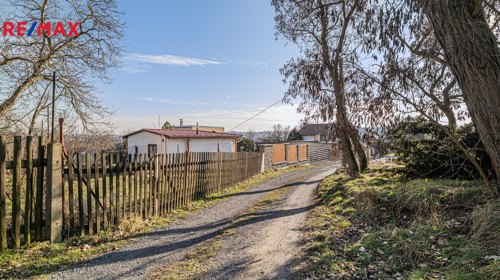 Součástí pozemku je soukromá příjezdová cesta, která zajišťuje komfortní přístup i dostatek soukromí. Na pozemek jsou přivedeny přípojky vody a elektřiny, kanalizace se nachází v blízkosti pozemku.