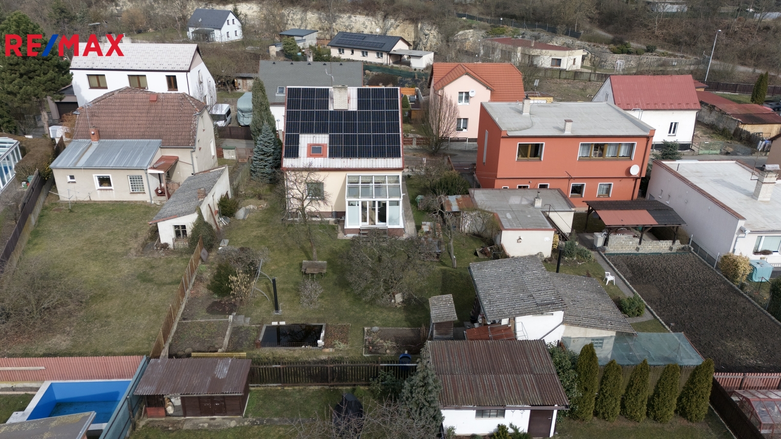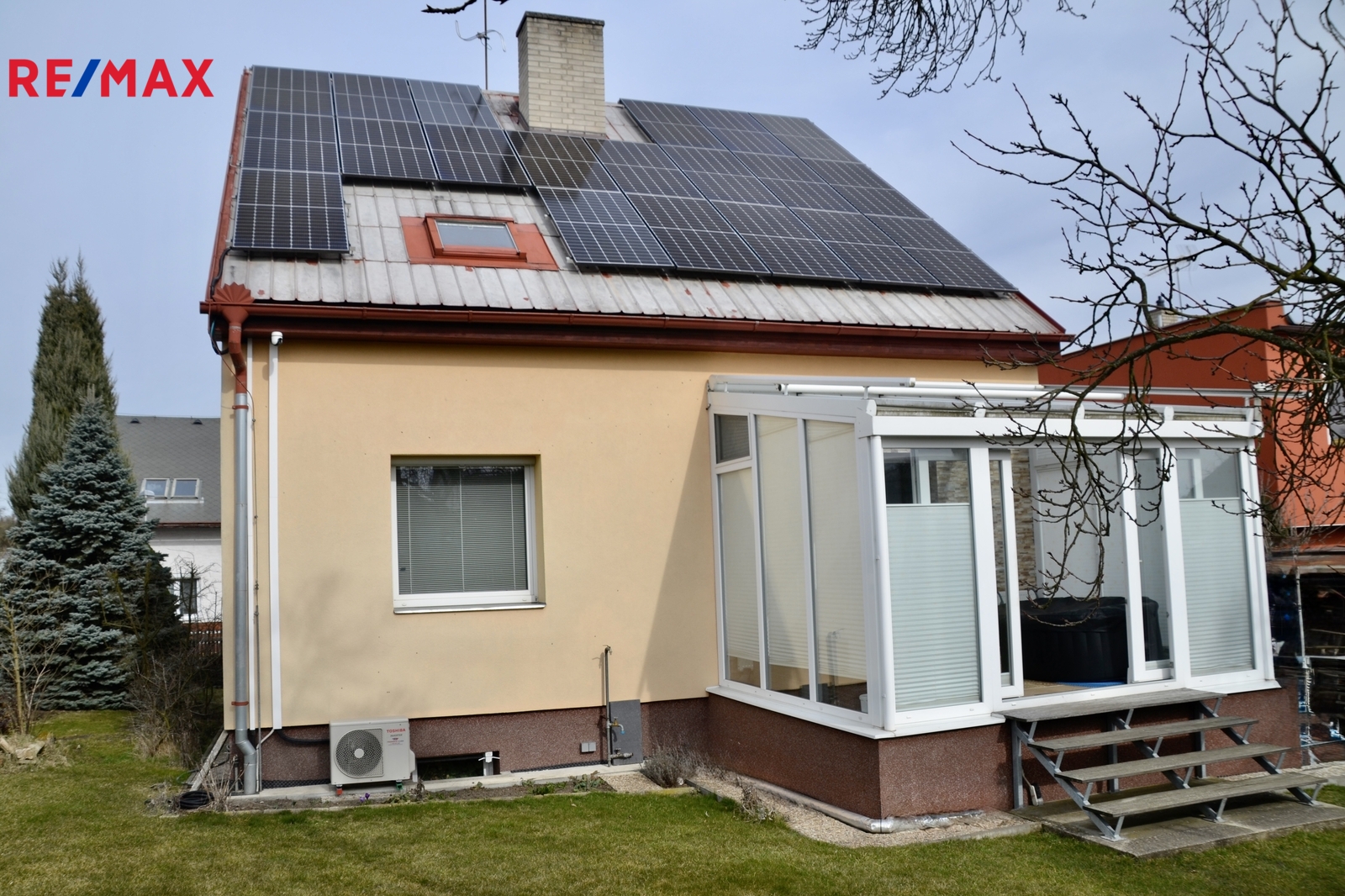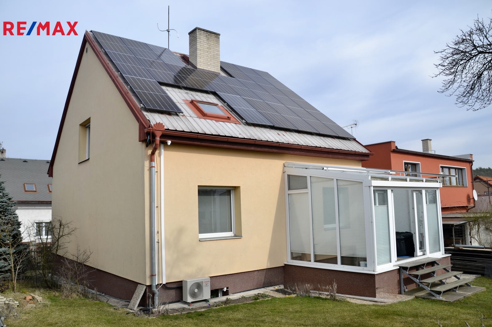 Velkou přidanou hodnotou jsou moderní technologie, jako jsou fotovoltaické panely, tepelné čerpadlo a bezpečnostní kamerový systém, které přispívají k úspornému a bezpečnému provozu domu.