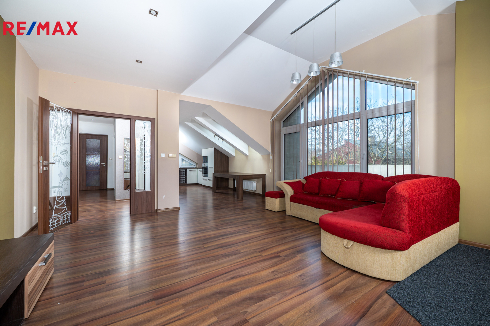 V 1.patře (III.NP) se nachází druhá bytová jednotka rovněž se samostatným vstupem. Nabízí světlý a prostorný obývací pokoj propojený s kuchyňským koutem a přímým vstupem na terasu, dále dětský pokoj, ložnici, koupelnu a samostatné WC – ideální zázemí pro pohodlné rodinné bydlení.