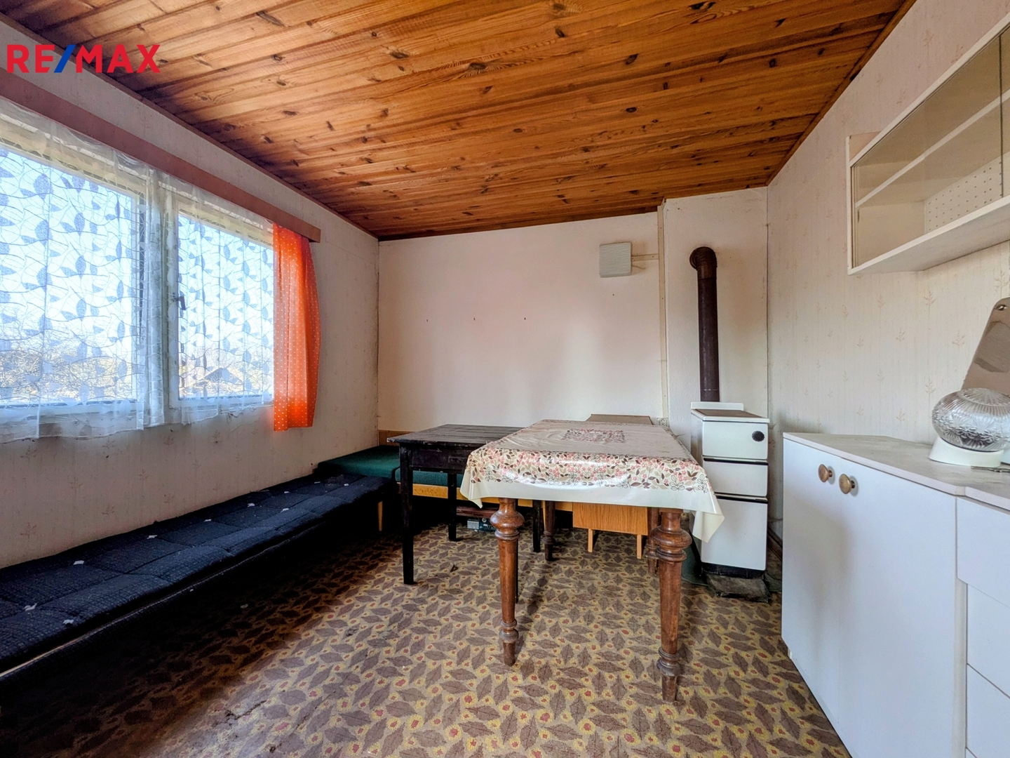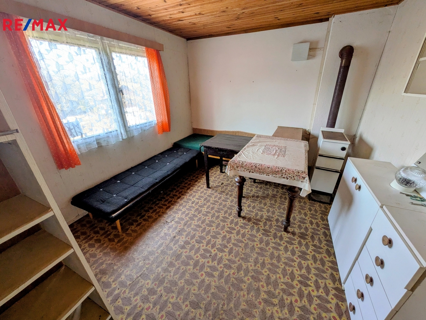 Chata je starší, postavená na zděné podezdívce a je částečně podsklepená, což poskytuje praktický prostor například pro uskladnění nářadí, úrody nebo zahradního vybavení. V přízemí se nachází obytná místnost a nad ní nízké podkroví vhodné k přespání.