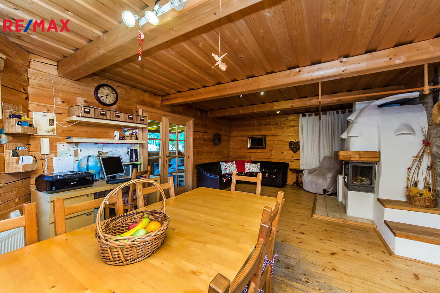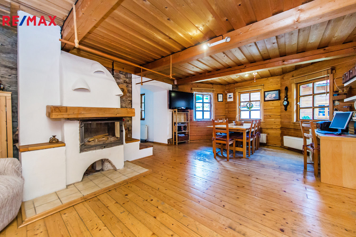 • Velkorysý obývací prostor s rustikálním designem, s krbem, s krytou terasou a výhledem do zahrady