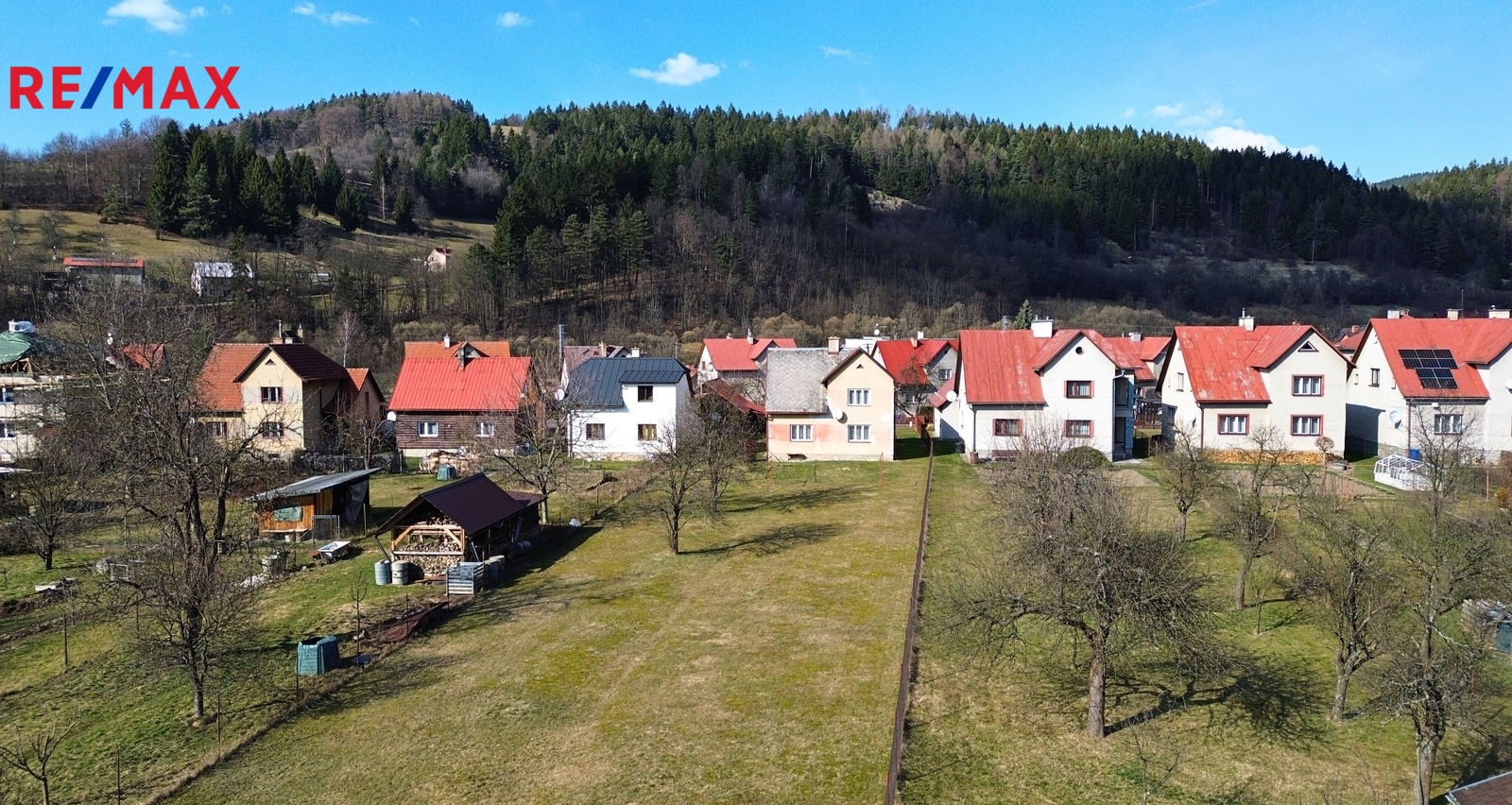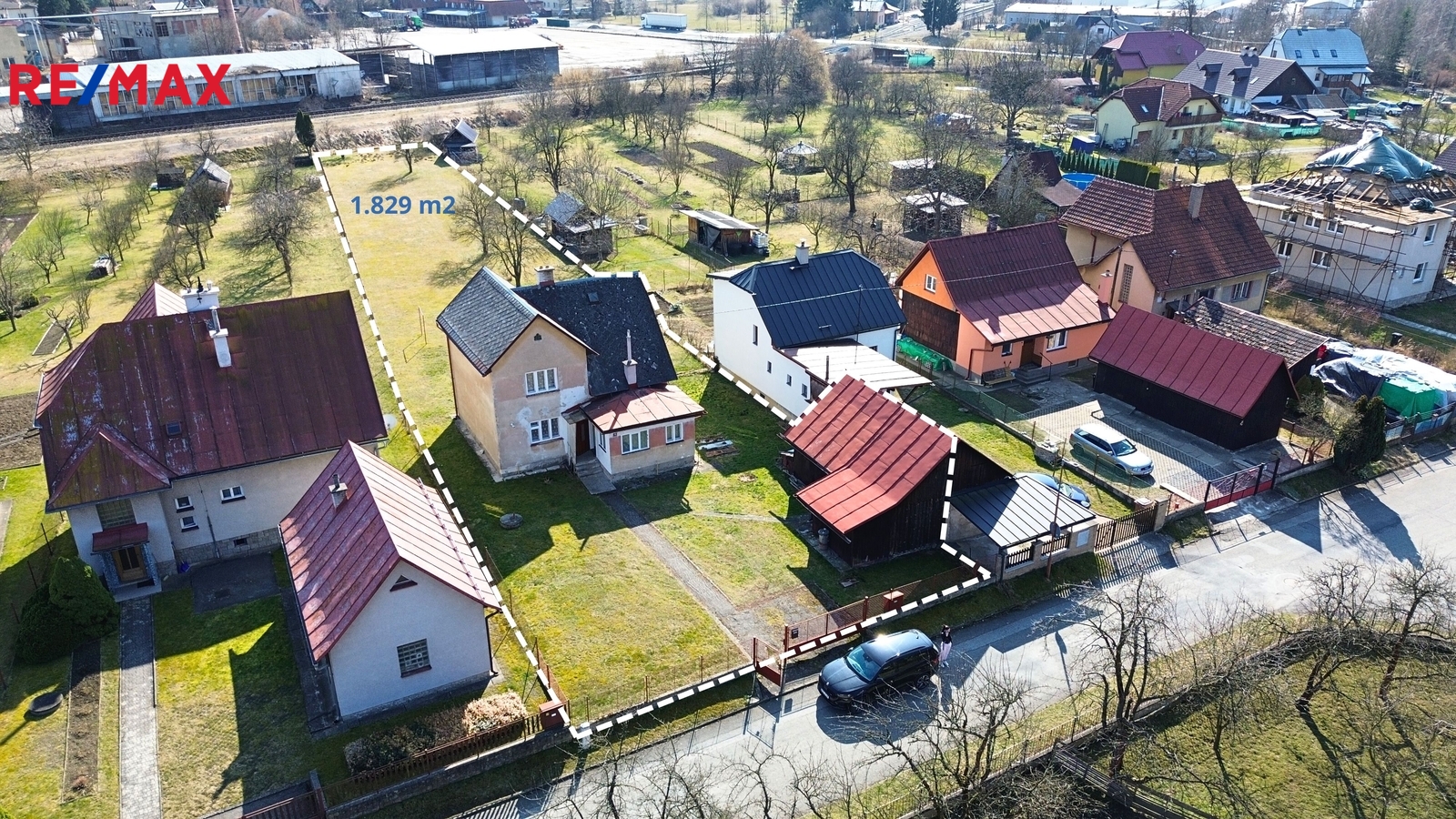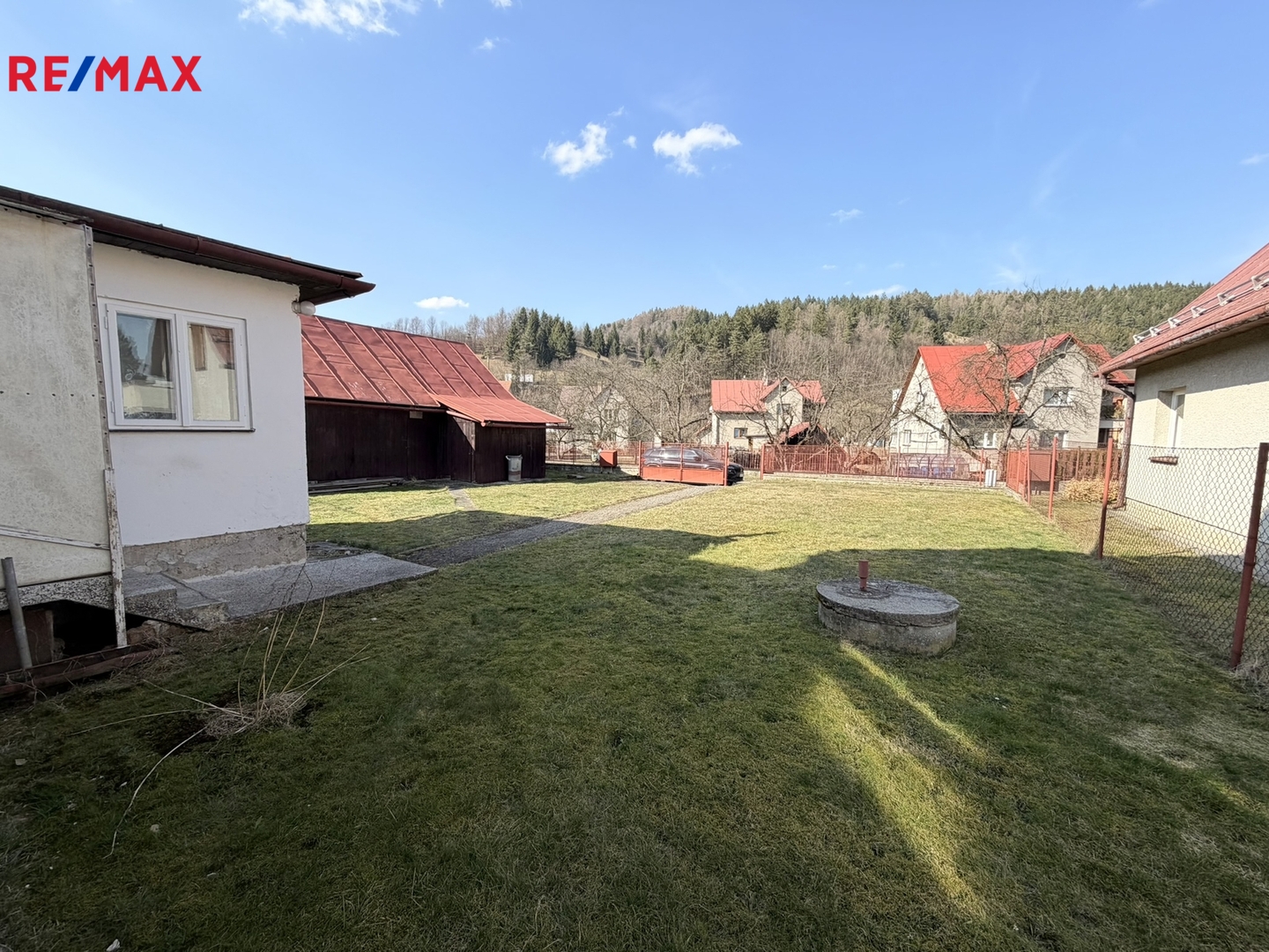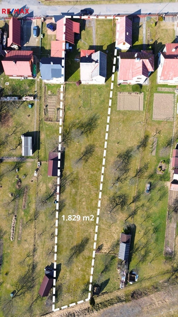 Dům se nachází na slunném pozemku o celkové výměře 1.829 m². Součástí pozemku je také menší dřevěná kůlna.