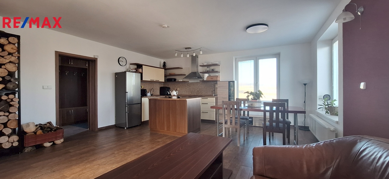 Dispozičně je dům řešen jako otevřený a vzdušný prostor tvořený obývacím pokojem s krbem, jídelní částí a kuchyňským koutem s praktickým ostrůvkem. Dále se v domě nachází dva samostatné pokoje (aktuálně využívané jako ložnice a dětský pokoj), koupelna s WC, technická místnost a zádveří s vestavěným úložným prostorem.