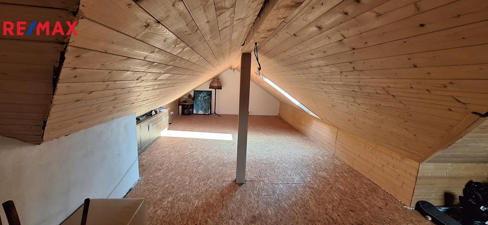 Součástí domu je také půdní prostor přístupný poklopem se sklopnými schody. Půda je zateplená, obložená palubkami a nabízí jednu prostornou místnost, kterou lze využít například jako pracovnu, hernu, ateliér nebo další obytný prostor dle potřeb nového majitele.