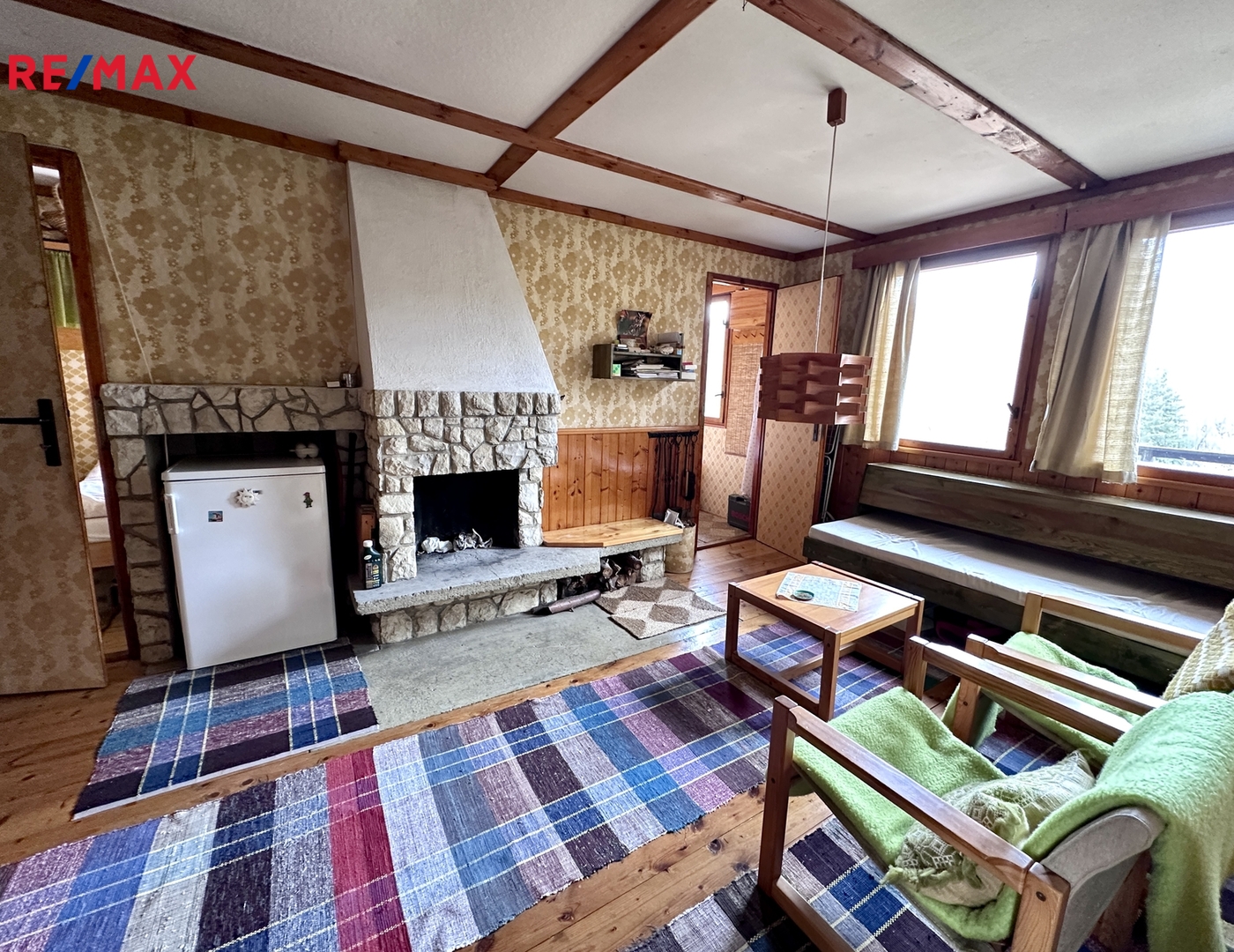 Chata je z roku 1970 a má podsklepenou terasu (sklep 8,5 m2), vstupní verandu 5,4 m2, kuchyň 3 m2, obývací pokoj 14,3 m2, dvě malé ložnice 4 m2 + 4,1 m2 a koupelnu s WC 2,5 m2.