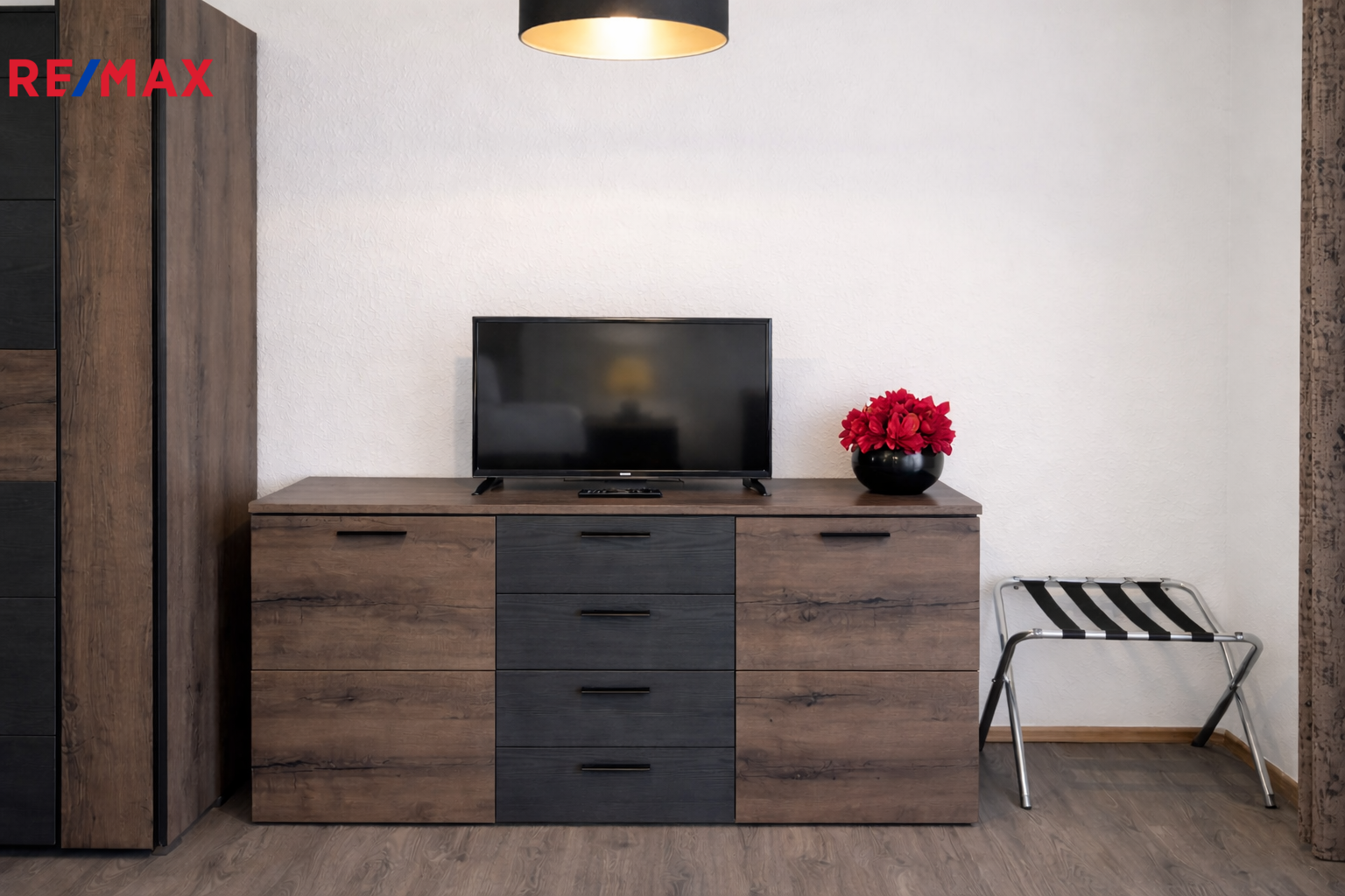 Apartmán i koupelna prošly rekonstrukcí, byla položena nová podlaha, je vybaven novým nábytkem (manželská postel, skříně).