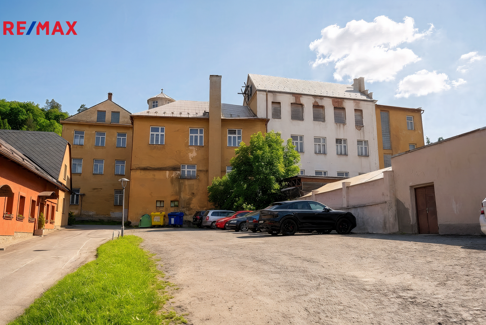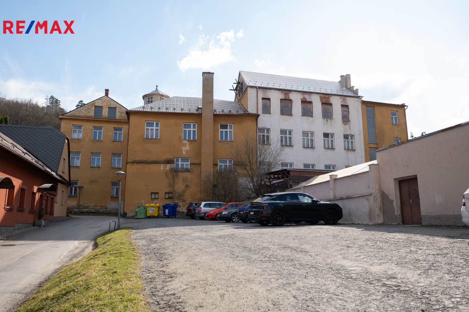 V areálu se nachází boční nádvoří se třemi garážemi a parkovacím přístřeškem. K dispozici je také vlastní parkovací plocha.