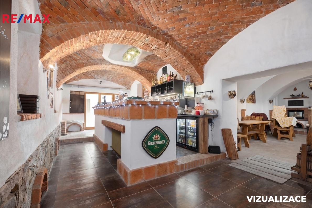 Přízemí hlavní budovy však již rekonstrukcí prošlo – v roce 2016 zde byla vybudována a zkolaudována rodinná restaurace. V současné době je provoz uzavřen a prostory jsou zakonzervovány, avšak připraveny k případnému obnovení. Součástí restaurace je prostorná kuchyně s kompletním gastronomickým zázemím. Vytápění zajišťuje teplovodní krbová vložka, pec a kachlová kamna, případně je možné využít také elektrické vytápění. Prostory jsou vybaveny rekuperační jednotkou, dvěma funkčními komíny a součástí prodeje je i veškeré vybavení restaurace.