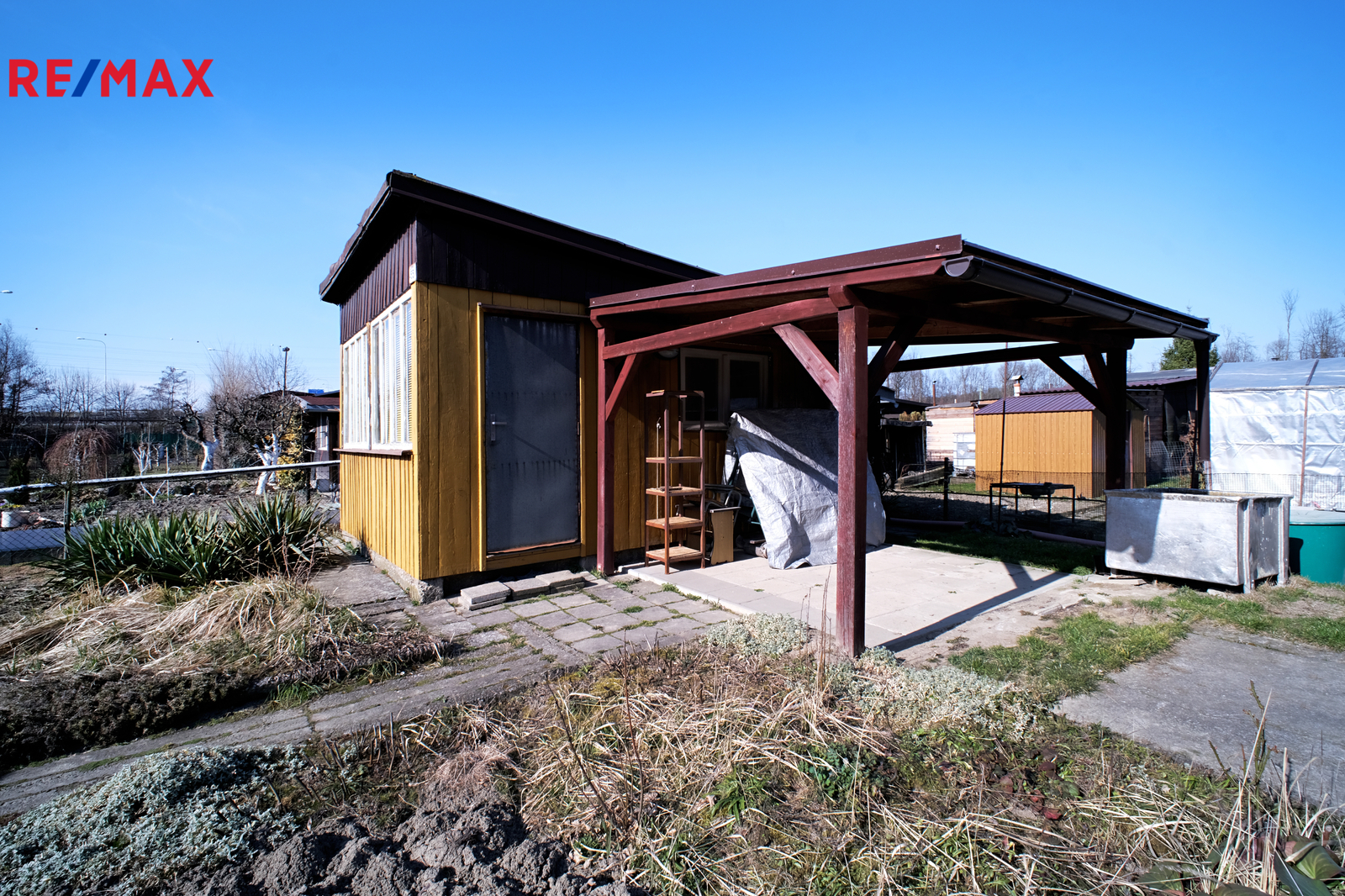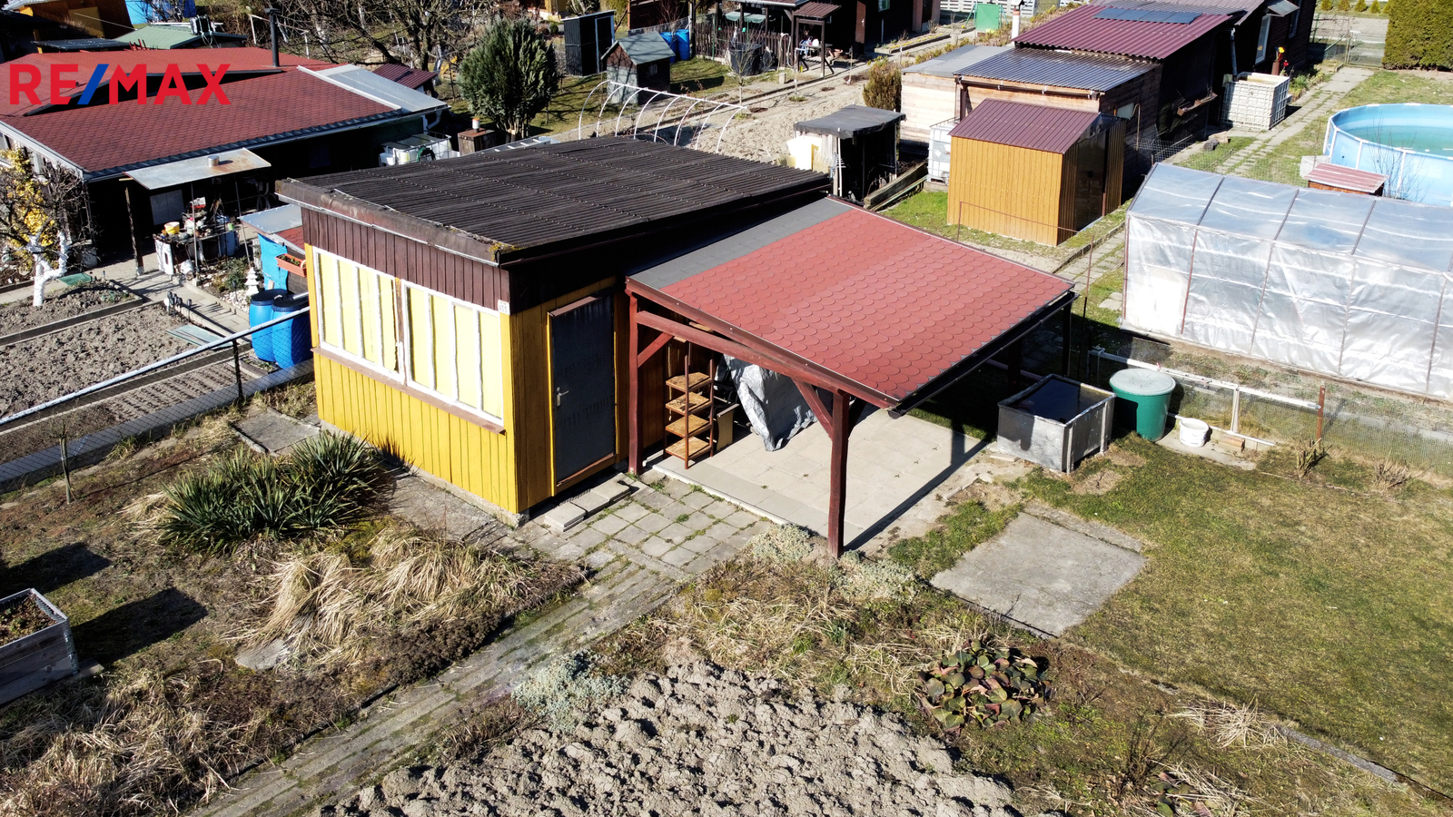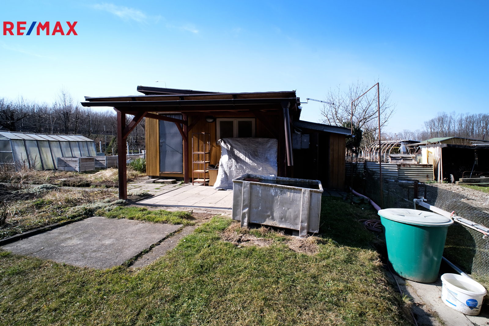 Na pozemku o rozloze 400 m² se nachází dřevěná chata o užitné ploše 19 m², která nabízí zázemí pro víkendový odpočinek i zahradničení. Součástí je také příjemná veranda, ideální pro ranní kávu nebo večerní posezení v klidu zahrady.